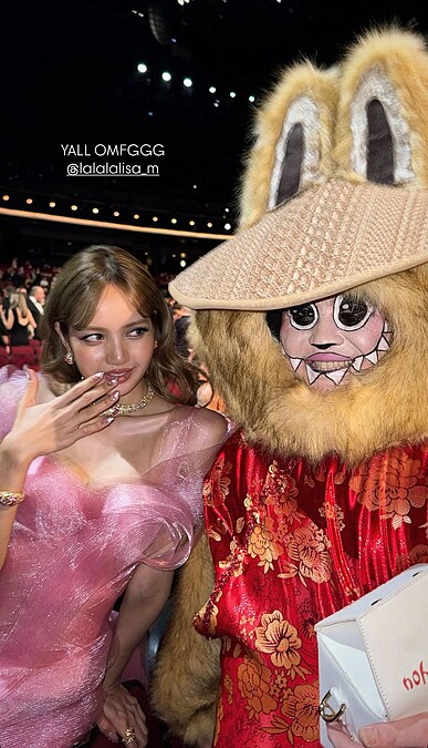 Joella頂著Labubu裝找到了Lisa合照,照片裡可以看到Lisa的表情似乎有點一言難盡,露出略顯驚恐的神情,不確定這隻Labubu她是愛、還是不愛?網友們則替Lisa說出心裡話:「雖然我喜歡Labubu,但這隻不太行…」、「求Lisa的心理陰影面積」,馬上引起社群話題,成為了本屆艾美獎的一個有趣小插曲。