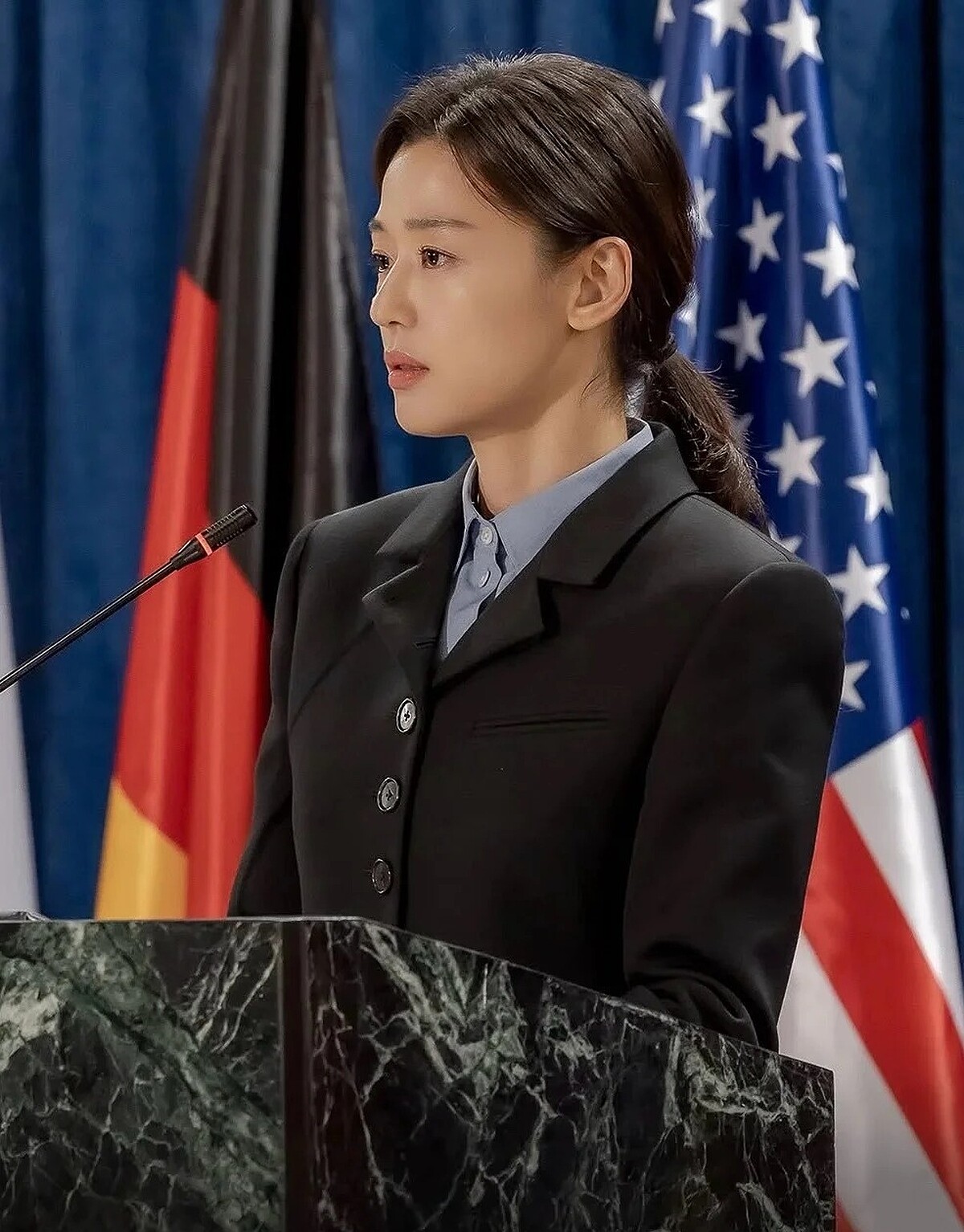 劇中飾演聯合國大使的全智賢,在一開場便遭遇丈夫遭到刺殺,後轉而從政並找出幕後黑手,之後與姜棟元飾演的探員有不少精彩對手戲,而全智賢在劇中因為角色設定,大多的造型都偏向精明幹練的氣勢風格,僅上線三集便陸續換上約10套造型,其中西裝外套、風衣更是必備單品。