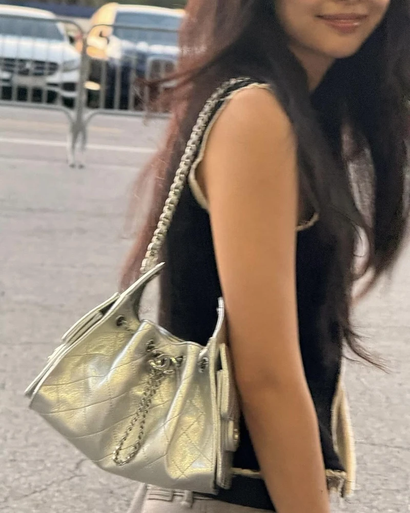自年初亮相以來,這款香奈兒新包已迅速攀升為年度 IT Bag,名人效應一路推波助瀾。Dua Lipa在巡演途中接連換背粉色、銀色、黃色與黑色版本;Charli XCX 則將它帶到Coachella的音樂祭草地舞台上,把搖滾氣息與奢華符號並置。如今Jennie在演唱會台下的銀色款現身,徹底驗證了這只包的魔力,以及自帶判定「什麼是熱點」的時髦能力。