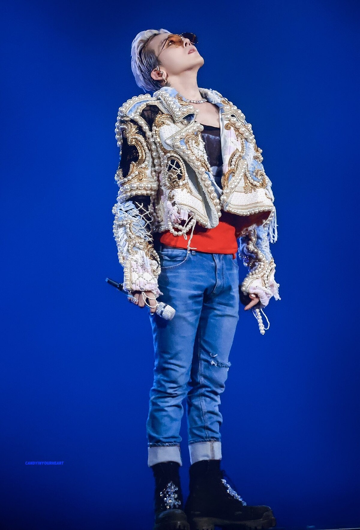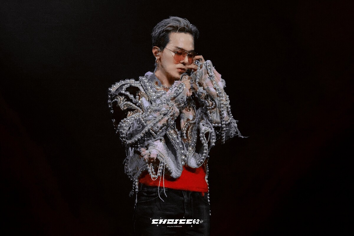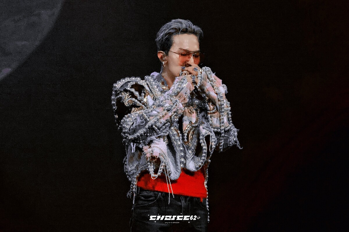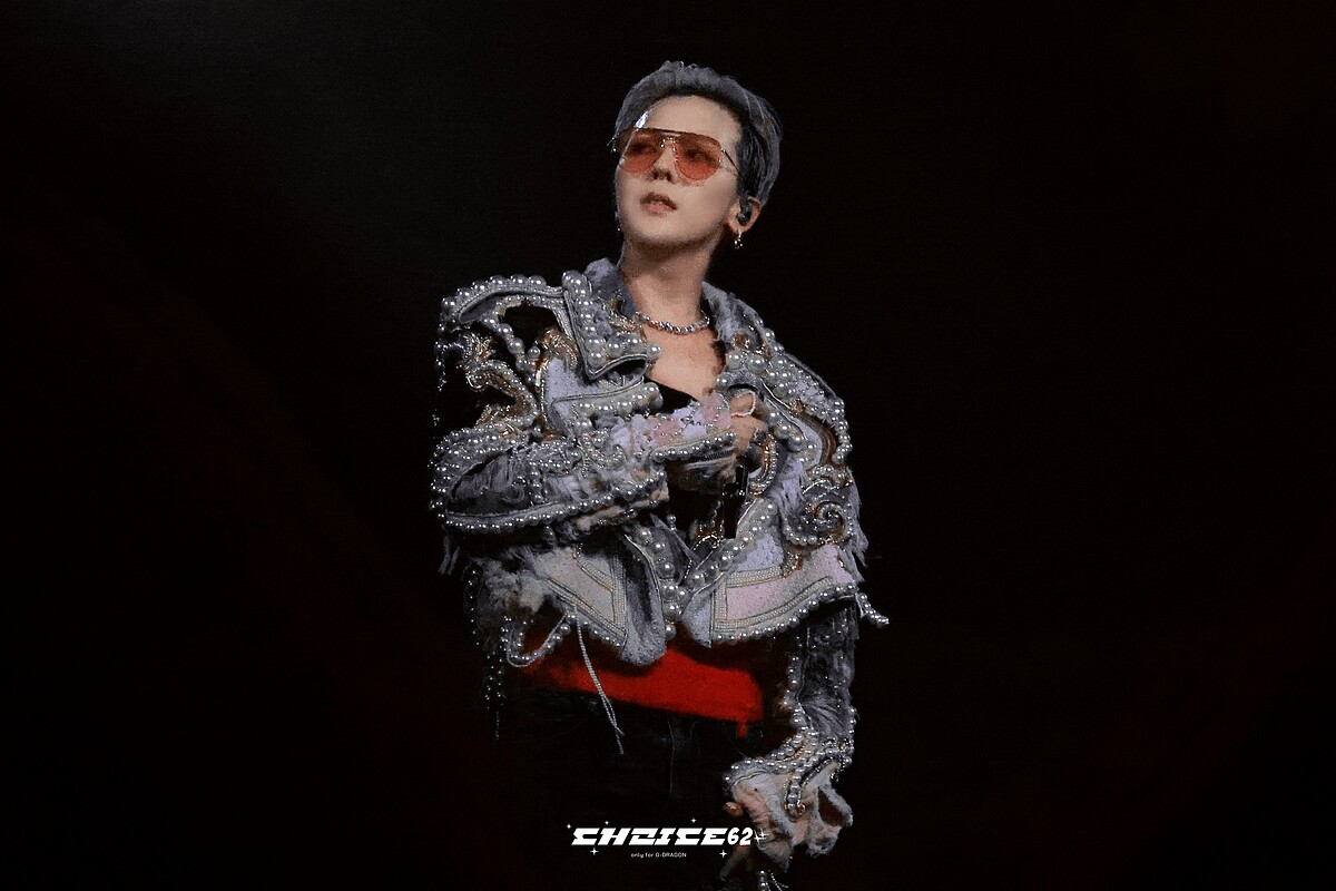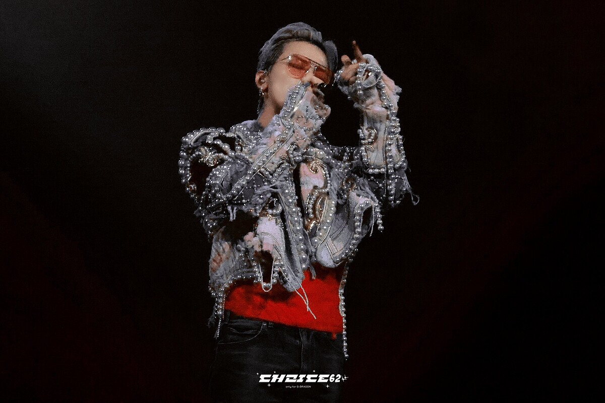 G-DRAGON 近期在香港個人演唱會上,身穿 BALMAIN 珍珠拼接短版夾克搭配丹寧窄褲與墨鏡,演繹獨特舞台風格。珍珠細節在舞台燈光下閃爍,增添奢華感,短版設計拉長身型比例,展現不凡氣場。墨鏡與俐落丹寧的搭配,強化搖滾與叛逆氣息,完美融合高級時尚與音樂人的自由靈魂,不妨以此造型作為預測,期待他在今年十一月回歸台北大巨蛋演唱會的嶄新造型!