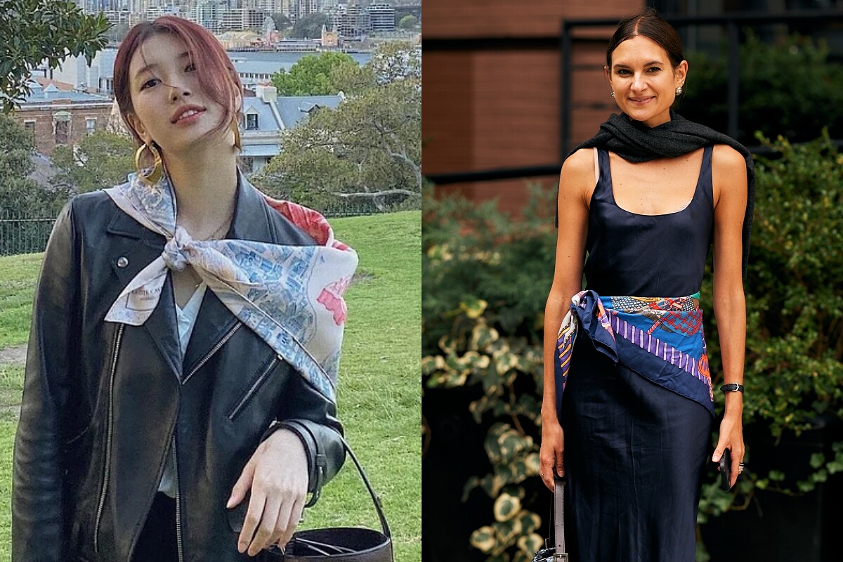 夏季掀起的絲巾多用持續至秋冬造型上,搖身一變成為多功能配件的絲巾,除了繫在脖子上,還能綁在包包、作為頭巾、甚至變身腰帶或髮飾,替整體造型注入亮點,讓基本穿搭瞬間升級!