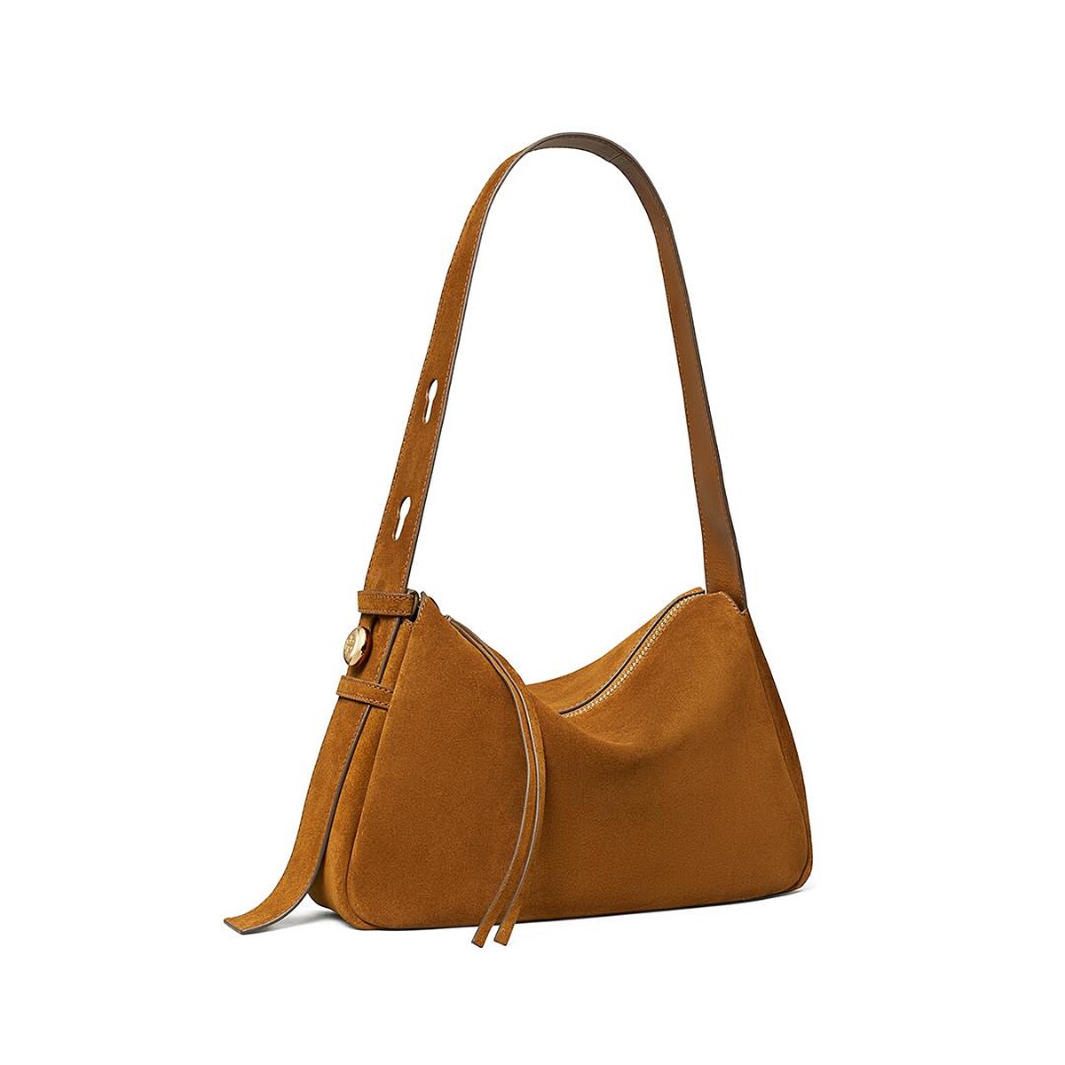 Romy沒有明顯的Logo壓紋,散發一種低調卻有底氣的存在感。彷彿告訴我們:「真正的時尚,就是悄悄在日常裡累積說服力。所以,若你正打算投資一顆能夠陪伴日常、同時又不失品味的包,Romy麂皮系列會是2025秋冬最值得入手的選擇。」