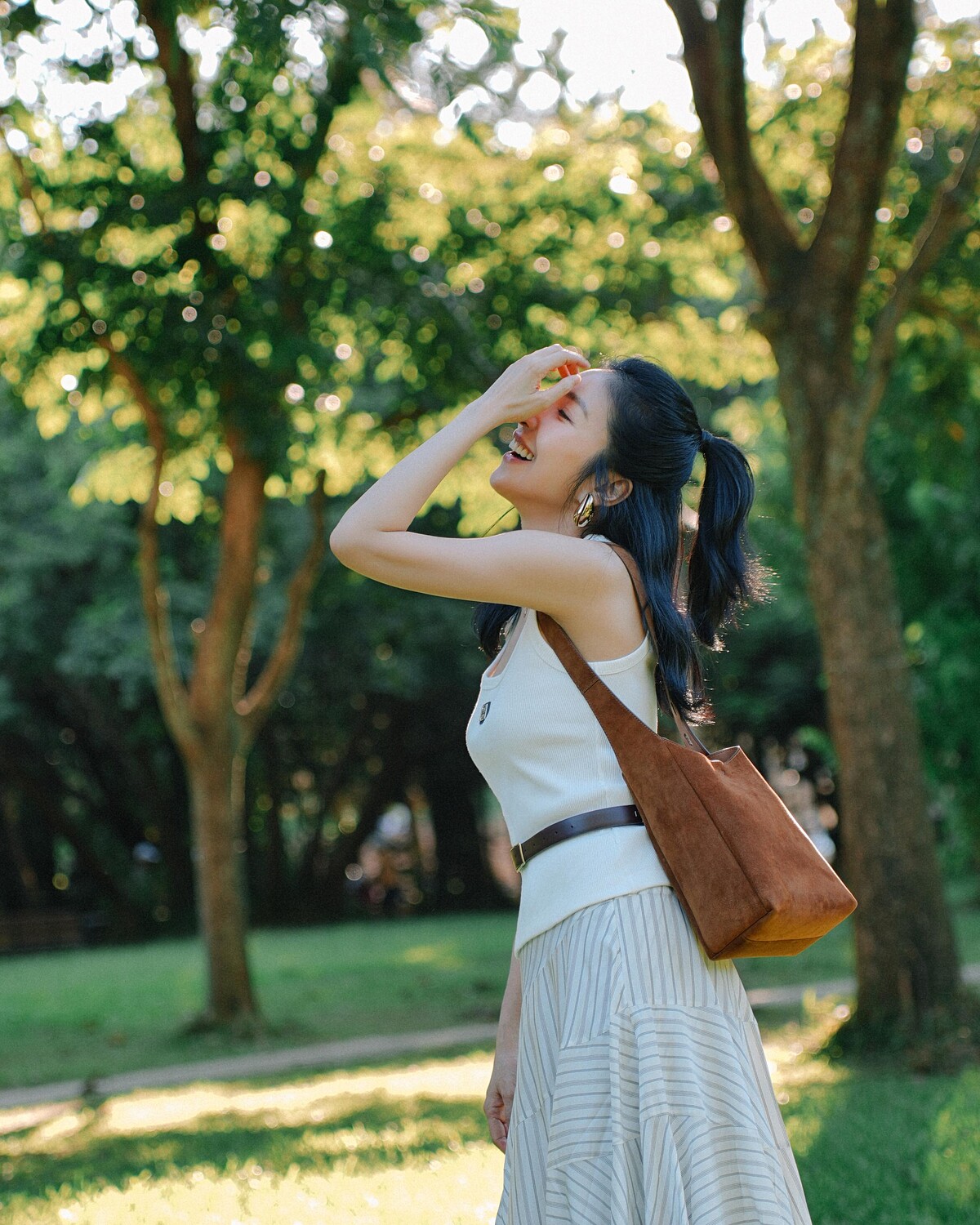 他的穿搭總能在「日常」與「潮流」之間找到最完美的平衡:一身簡潔造型,肩上那只 Romy 鹿皮包瞬間成為亮點。不同於傳統代言人的距離感,宋雨琦自帶一種「讓人想跟著他買同款」的親和帶貨力,這正是年輕世代時尚消費的驅動力。因此,當他時髦出現,Romy順勢從低調實用的包款,升級成一個 「必須擁有的時尚標誌」。