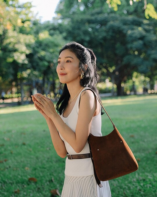 他的穿搭總能在「日常」與「潮流」之間找到最完美的平衡:一身簡潔造型,肩上那只 Romy 鹿皮包瞬間成為亮點。不同於傳統代言人的距離感,宋雨琦自帶一種「讓人想跟著他買同款」的親和帶貨力,這正是年輕世代時尚消費的驅動力。因此,當他時髦出現,Romy順勢從低調實用的包款,升級成一個 「必須擁有的時尚標誌」。