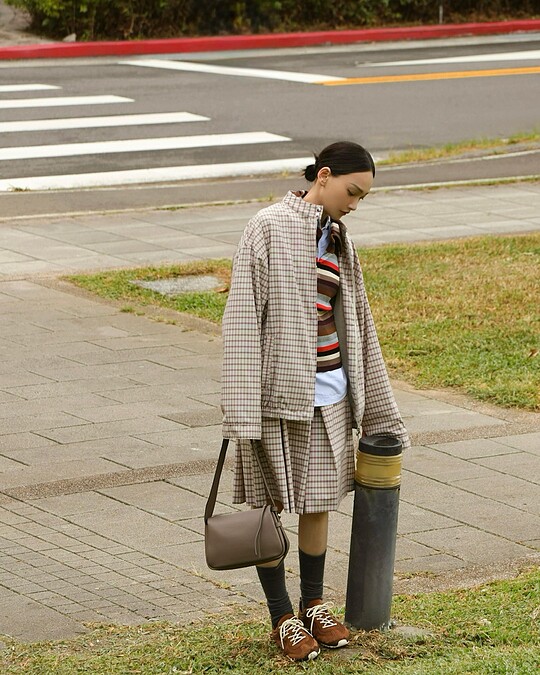 秋冬造型,少不了層次。厚重毛衣、大衣、長靴齊上陣,容易讓整體顯得壓迫。這時候,一只霧感的鹿皮包正好成為平衡點:
