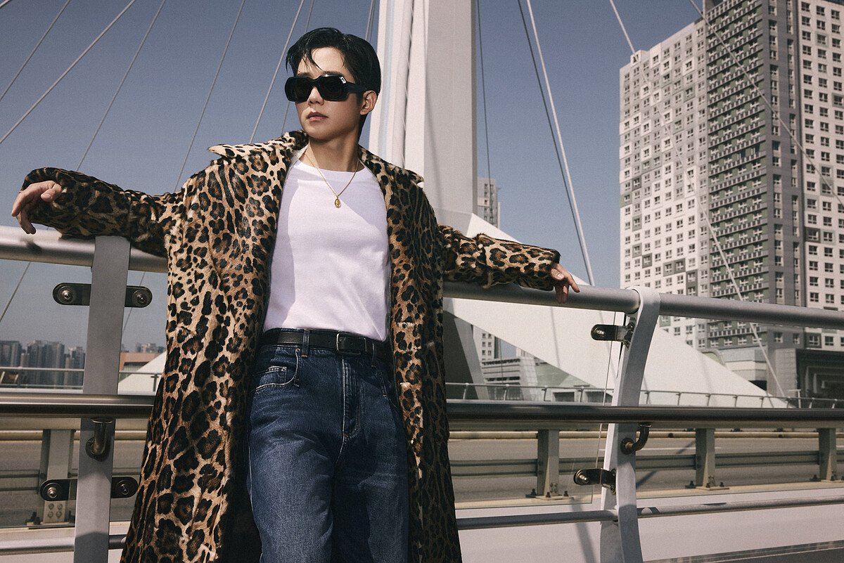 丁海寅穿上大膽豹紋長大衣與白色內搭,結合電影感與男性張力,散發銀幕巨星的野性氣場。既奢華又不羈,成為秋冬焦點單品。