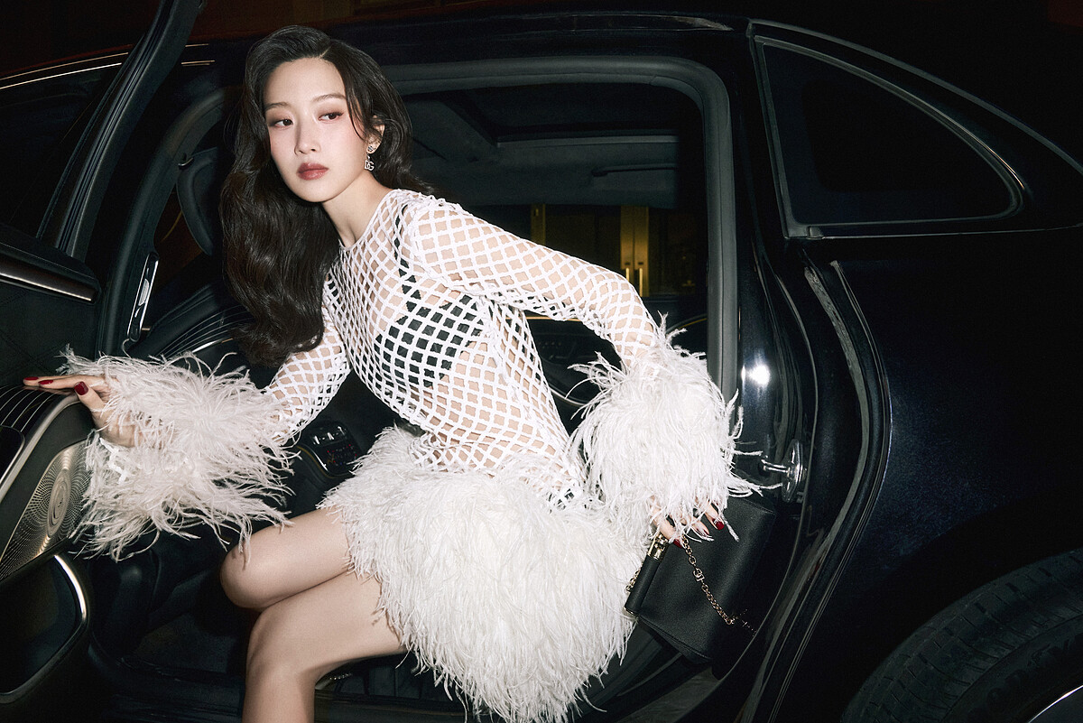 網狀結構搭配流蘇細節,能夠隨步伐舞動,呈現文佳煐自由與靈動的自在風格。白色清新色調也突顯其獨立與柔美的個性。