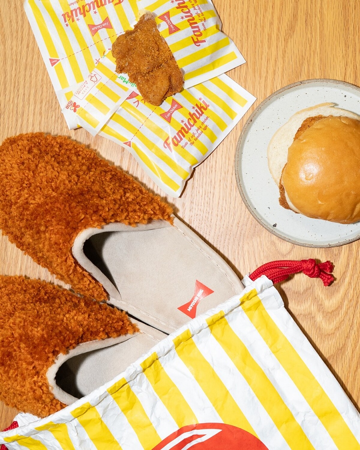 這次日本全家便利商店與合作的對象是1968 年創立的生活品牌Miyoshi Rug,推出的系列以以布製家居單品為人熟知,像是拖鞋、地墊、收納袋等,質感細膩又帶點幽默感,品牌強調「實用+趣味」並存,總能把日常小物變得有溫度,甚至帶點療癒笑點,這次和全家的合作也很完美的將品牌精神結合,讓日本全家炸雞死忠粉不只能吃,還能「穿」。