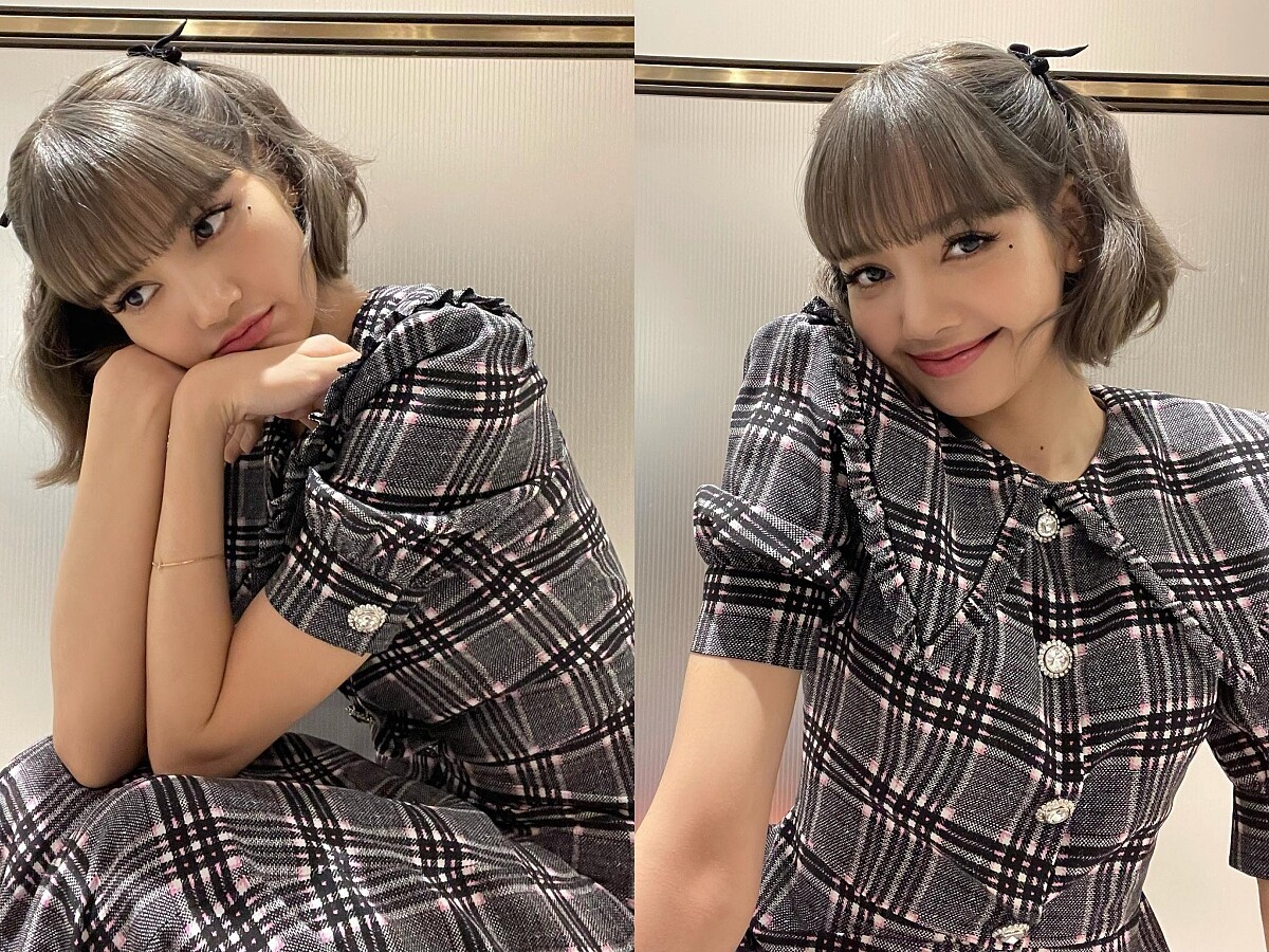 2021年時,當時還是韓系芭比風格的Lisa,也在Instagram上分享穿著這件黑灰格紋洋裝的穿搭照,從妝髮到散發出來的風格,都與凱特王妃展現截然不同的甜美氛圍,讓這件洋裝多了份活潑的味道。