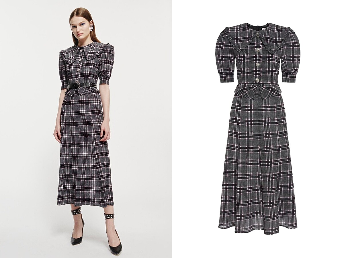 這件讓凱特王妃意外與Lisa撞衫的格紋洋裝,來自英國設計師品牌Alessandra Richy在2021年早秋系列中推出的作品,品牌設計主要結合復古元素與現代俐落剪裁受到時尚迷的喜愛,常見標誌性元素包括維多利亞風格的領口、誇張肩線、修身線條,以及大膽的印花與格紋設計,而這件洋裝的設計領感更有一部分來自英式的學院制服。