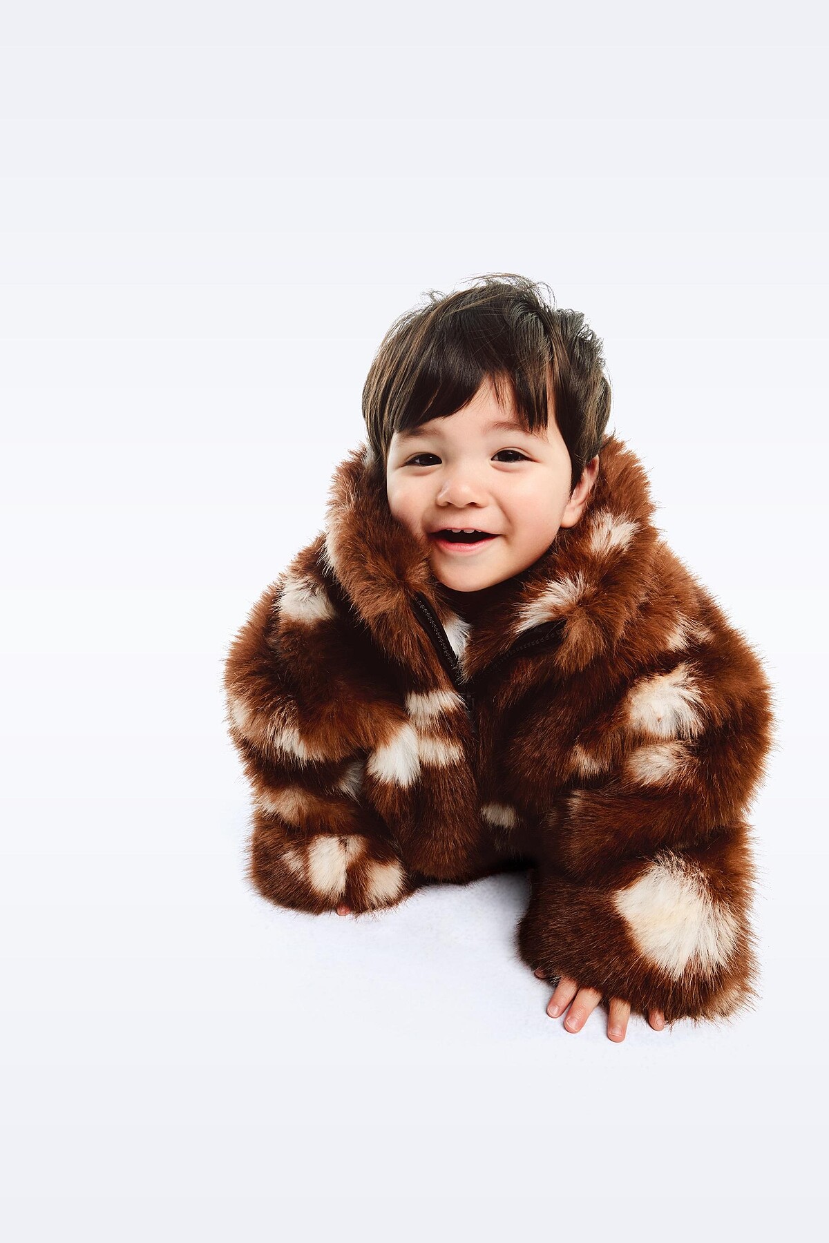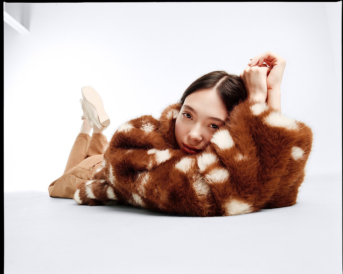 同時,她也將品牌經典的芭蕾舞鞋化作藍色毛衣上的趣味圖案,讓日常單品更添童趣。而外套系列更是整個聯名的焦點,細節上可見:從蕾絲飾邊的機能外套、純素皮草套頭衫,到雙面穿 Sherpa 夾克,每一件都像是對童年溫度的再現。Liang 曾說,她設計外套時總會想起小時候在學校操場奔跑的模樣,那份自由與安全感,正是她想傳遞給穿著者的力量!