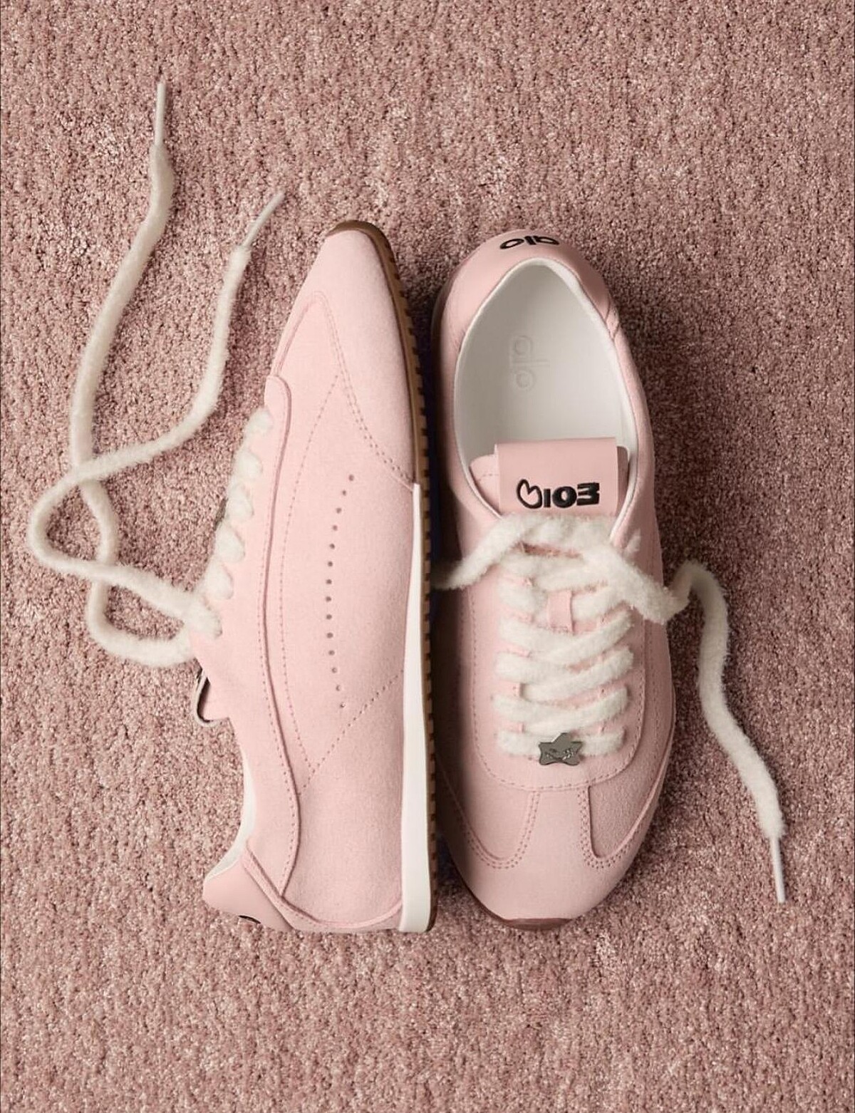 Jisoo選擇了「Bloom Pink」作為Sunset Sneaker的新裝,低飽和度的桃粉色麂皮,與此鞋款的焦糖色薄底相當適配,也呼應了她私下俏皮、活力的個性;舌上則藏著「103」字樣的密碼,原來正是代表她的生日「1月3日」。