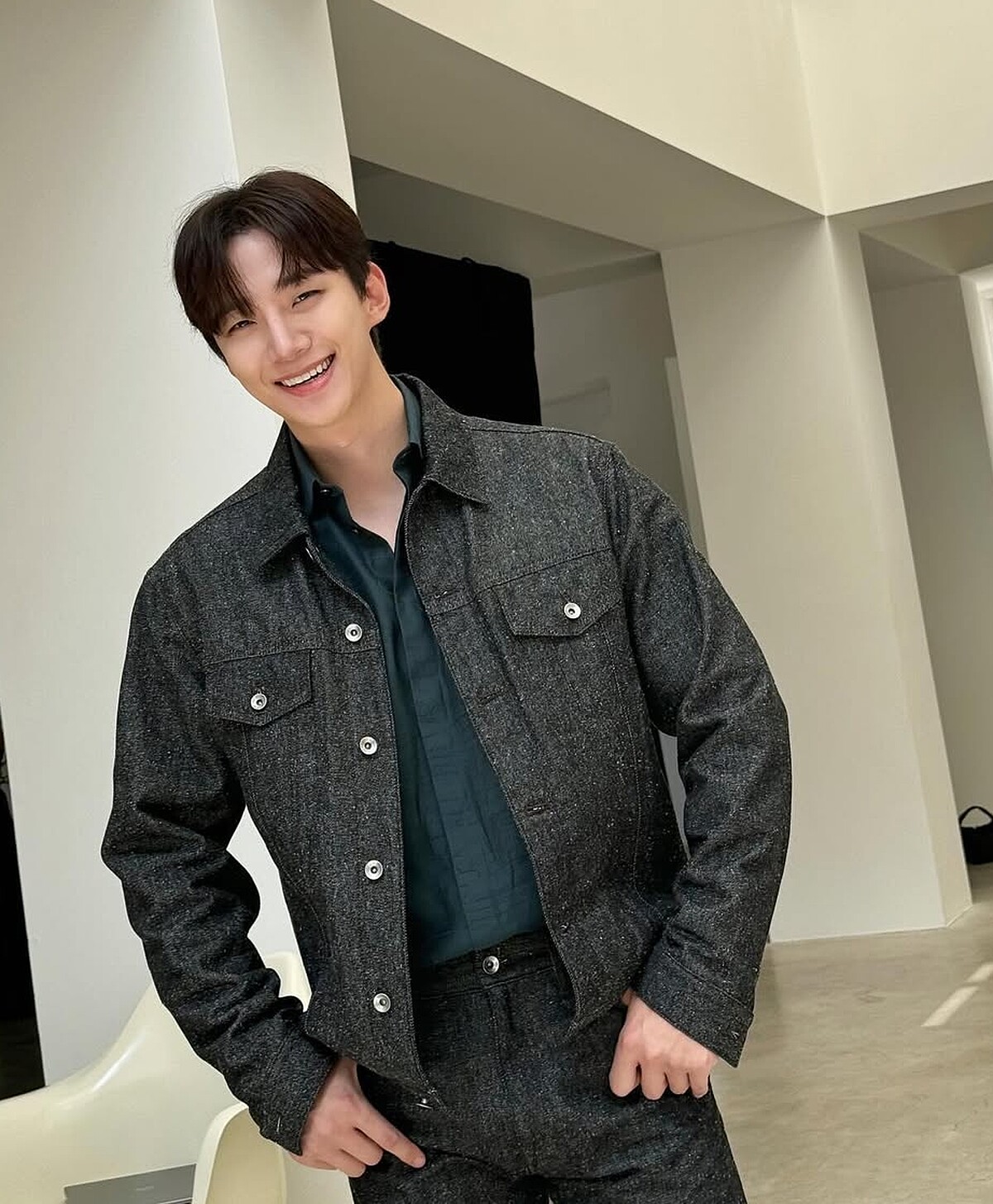 深綠色襯衫不算是很常見的襯衫選擇,不過李俊昊選擇與深灰色丹寧外套搭配,展現出相近色系的層次組合,而丹寧材質自帶的休閒感,也能讓襯衫造型在視覺上看起來穩重卻不沈悶。