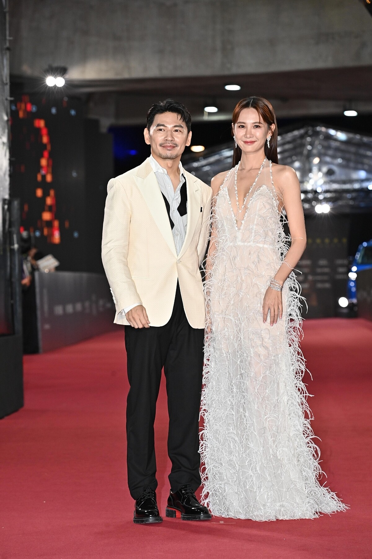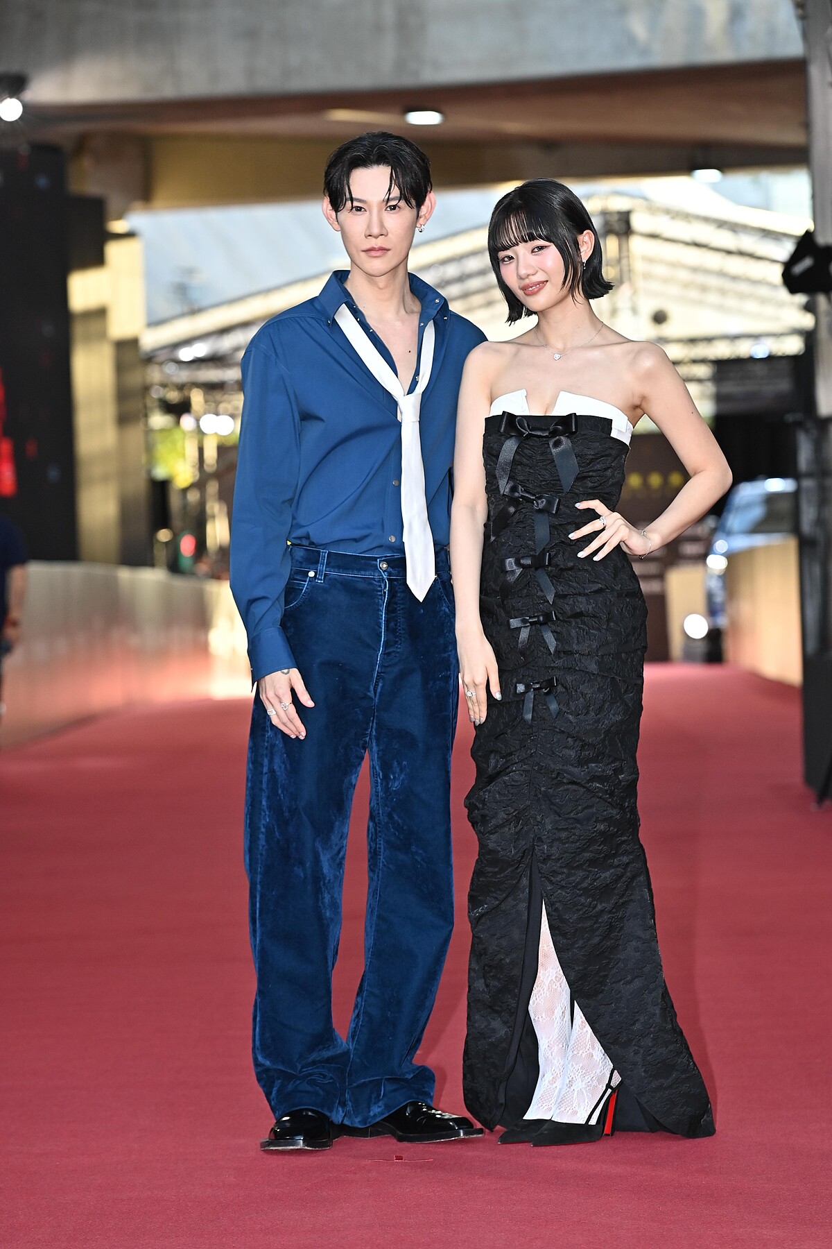 阿KEN(林暐恆)、安心亞以《同學來了》入圍本屆金鐘獎,兩人也在今天攜手踩上紅毯,以白色係互相呼應,阿Ken的Dunhill白色西裝造型因為微開的領口看來鬆弛時髦,而安心亞則是穿上一襲深V白色羽毛禮服搭配Christian Louboutin Degrasandal Queen高跟鞋亮相,在紅毯上顯得仙氣十足。