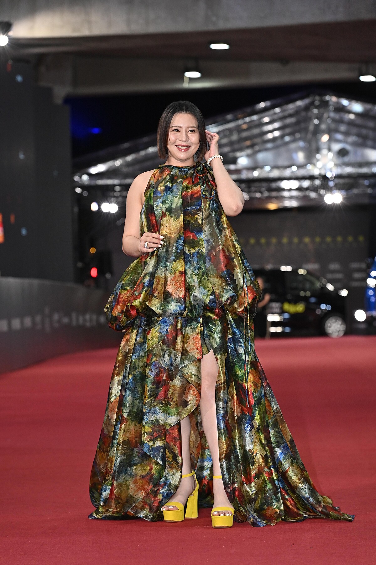 劉品言的預產期就在11月底!她以一襲油畫花卉禮服造型現身金鐘紅毯,整個人狀態閃閃發光,腳上還穿著超高的黃色高跟鞋,敬業態度令人欽佩!堪稱最美準媽咪。