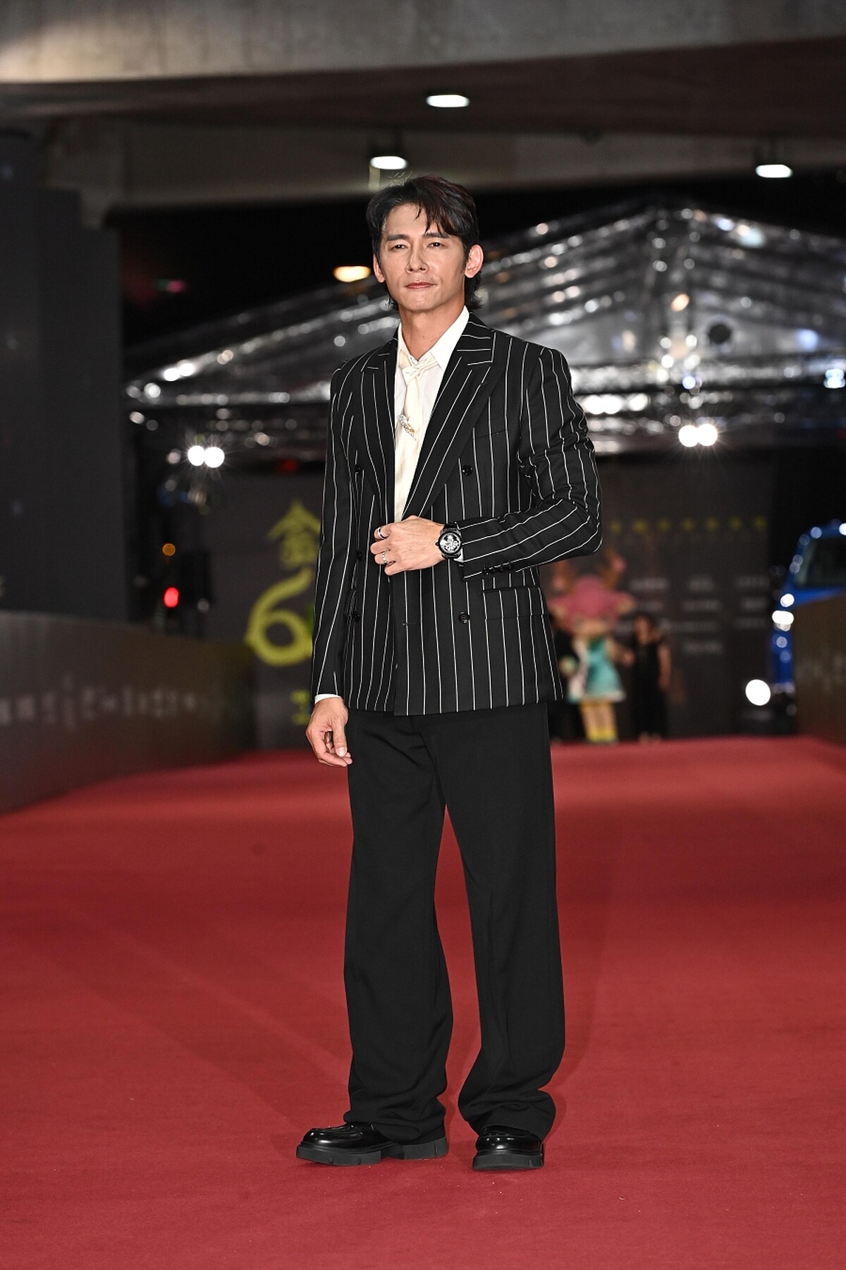 胡宇威今年以《人生幹大事上船了各位!》及《不在我的世界當勇者》雙料入圍金鐘獎,他穿上一身Dolce&Gabbana短版剪裁西裝展現俐落有時髦的魅力,內搭的緞面短高領上衣更是點睛之筆。