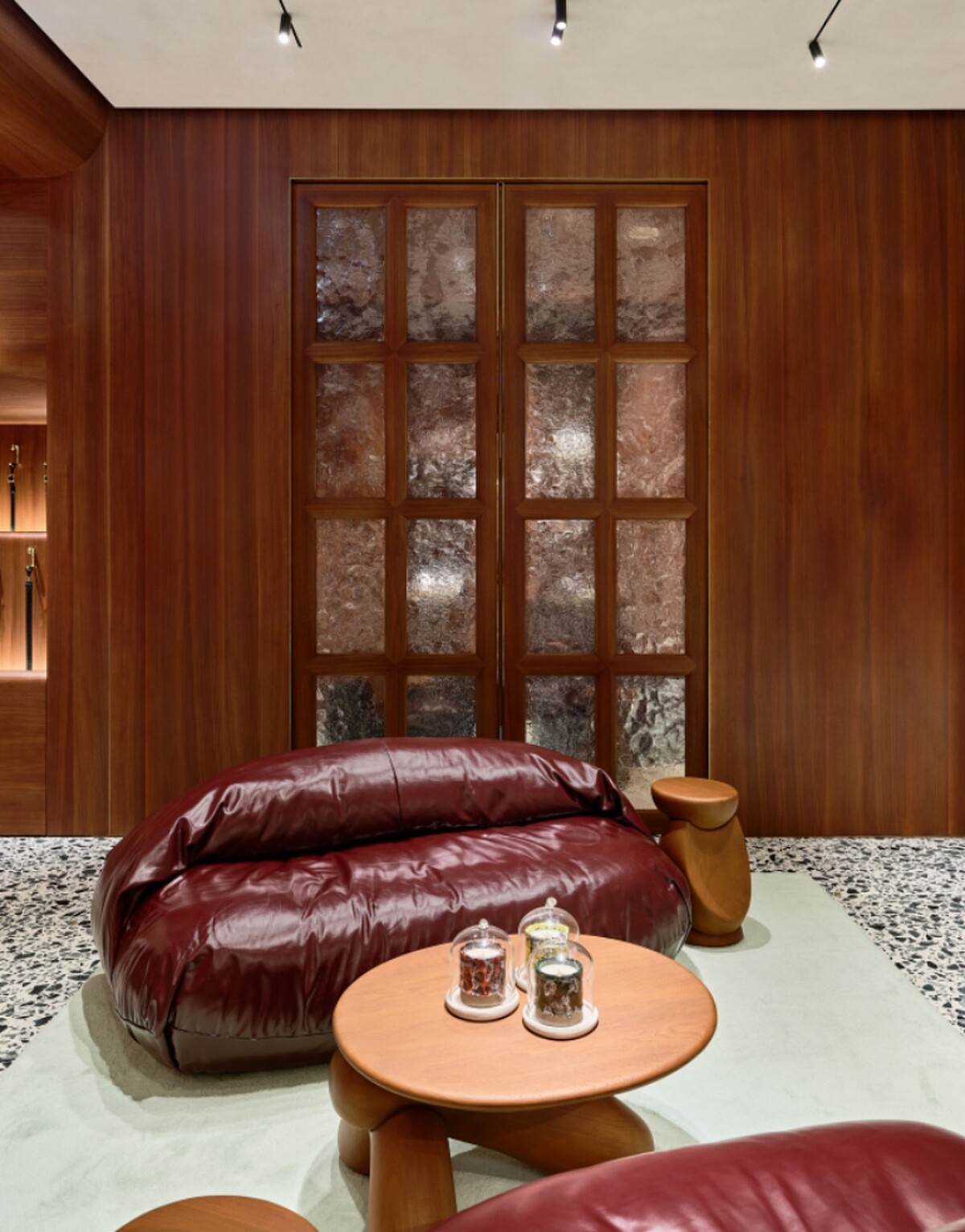 店中一角Bottega Veneta特別打造了VIP私人專屬空間,在沉穩的胡桃木陳列台與舒適的氛圍之下,細細品味來自品牌的工藝作品與細節,並享受獨立且個人化的尊榮購物體驗。