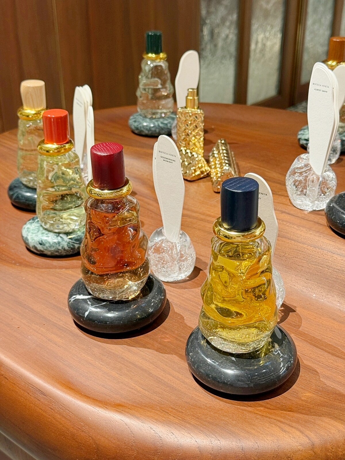 Bottega Veneta將工藝美學延伸至香氛世界,早先推出的話題香氛系列也在此次新店中首次引進,除了原有的香調之外,並同步亮相開賣三款全新的木質調香水。