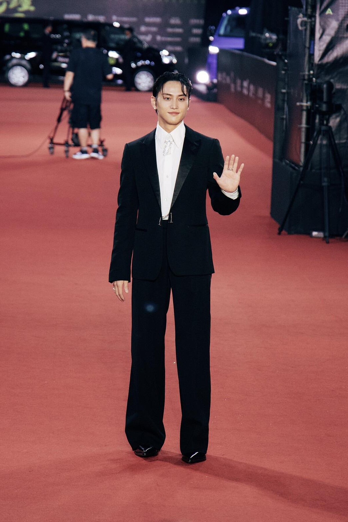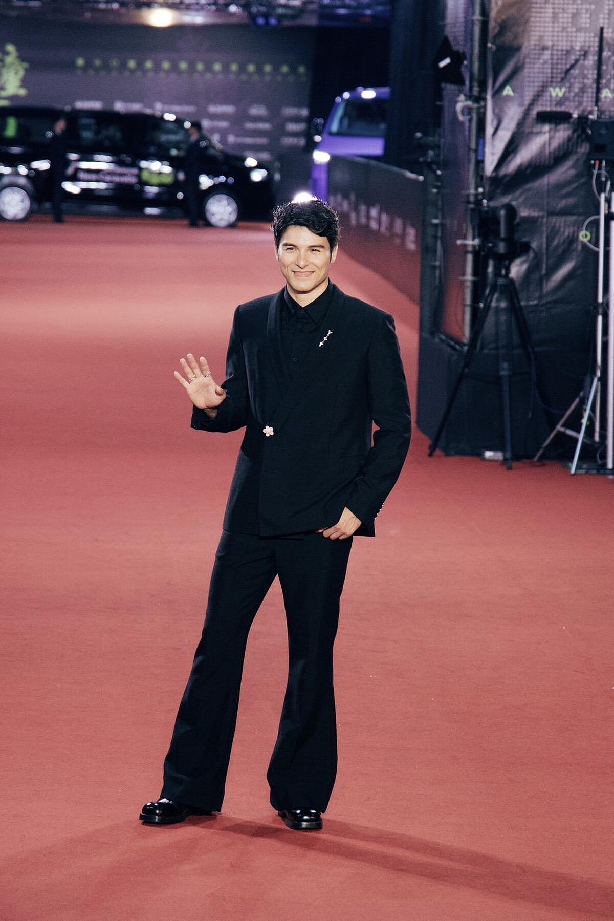鳳小岳以《人生清理員》角逐男主角獎,紅毯上他身穿Louis Vuitton2025秋冬男裝系列的黑色和服風格西裝外套,點綴粉紅色櫻花鈕扣、搭配黑色襯衫、黑色喇叭褲出場,並同樣佩戴Louis Vuitton的珠寶首飾、箭矢胸針和腕錶。