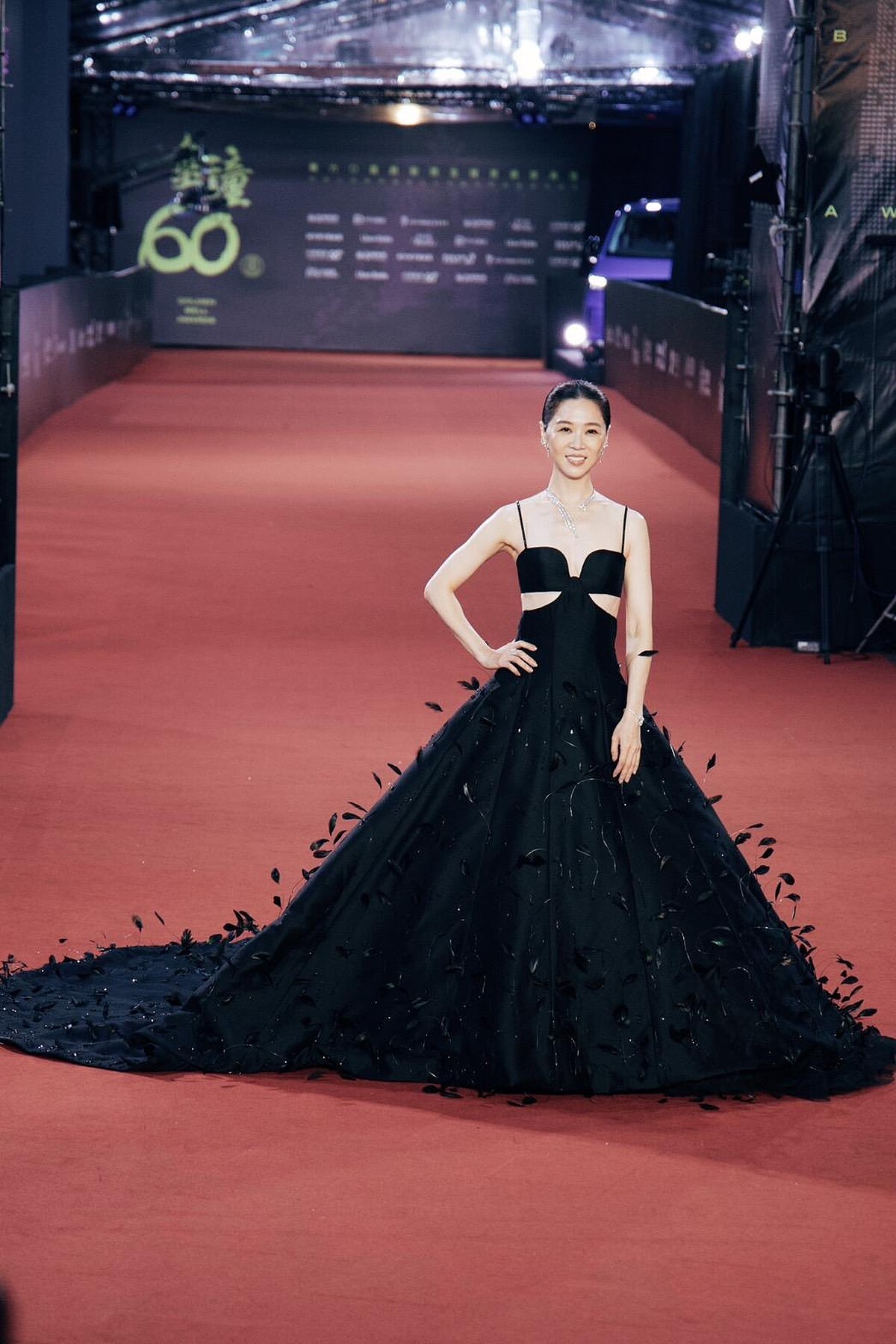 以往多次選擇褲裝造型出席大型紅毯的謝盈萱,這回風格產生巨大轉變!她選擇一襲黑色羽毛大禮服登場,細肩鏤空的馬甲上身設計大膽而高級,搭配香奈兒頂級珠寶系列項鍊、耳環和戒指,整體造型保持她低調的本質、同時展現勢在必得的氣場!