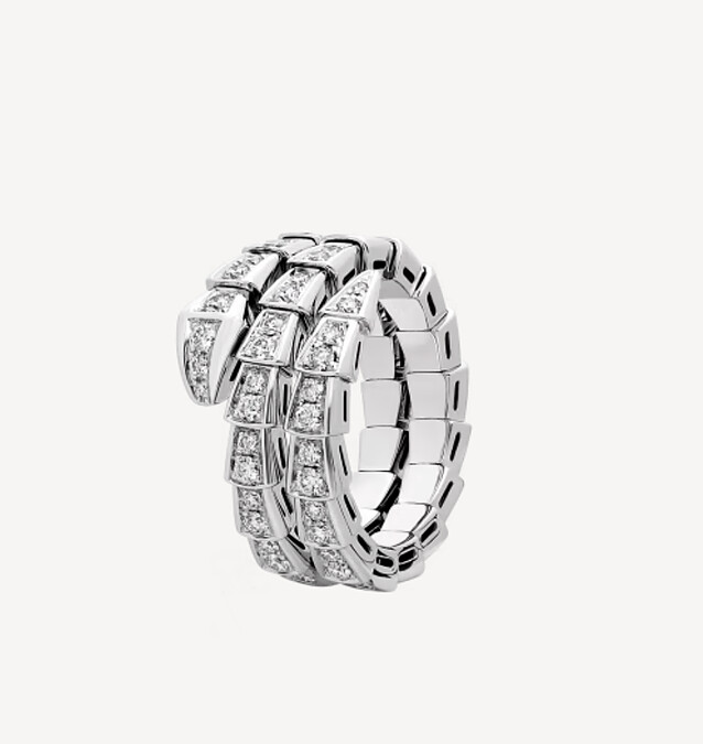 SERPENTI VIPER 戒指 Serpenti Viper 雙圈戒指,18K 白金材質,飾以全密鑲鑽石。參考價NT$ 597,000