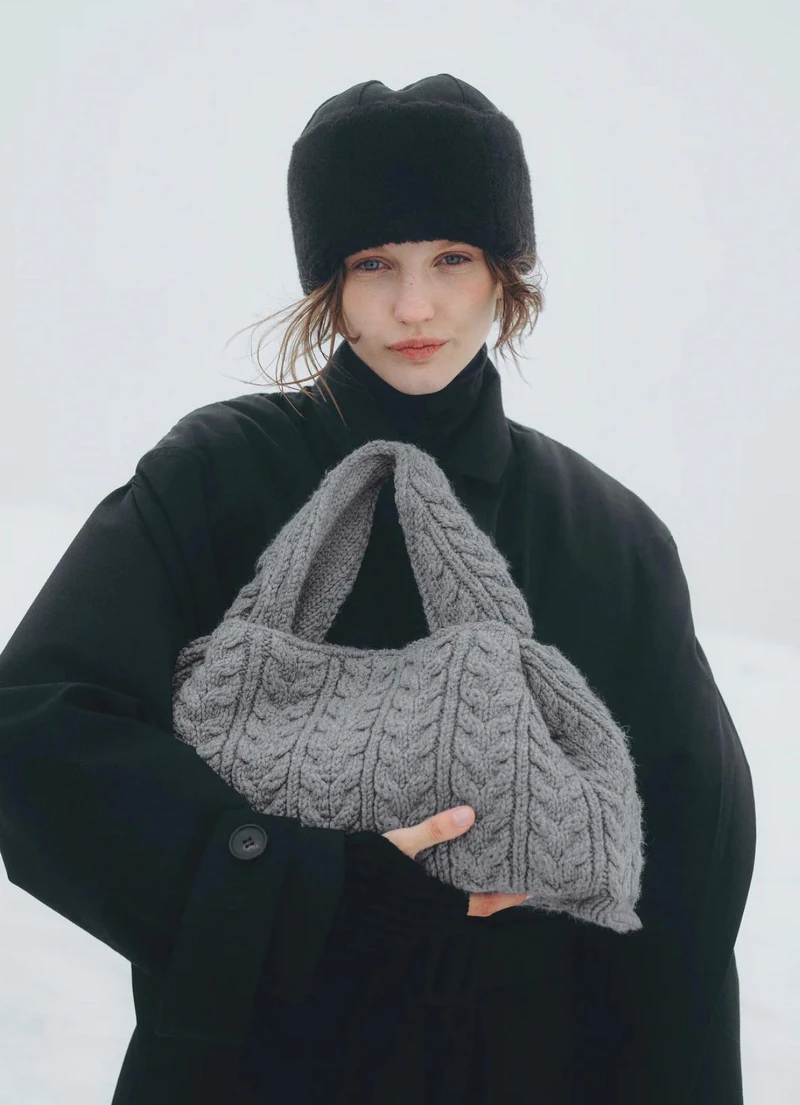 全新冬季版本的Cyme與Number Nine,採用產自烏拉圭的美麗諾羊毛,並於義大利手工製作,靈感源自成衣中常見的麻花編織技法,直接運用在手袋上頭,呈現出柔軟溫暖的意象,讓人看著就能感覺到一股暖意,底層則仍有小牛皮支撐著廓形。