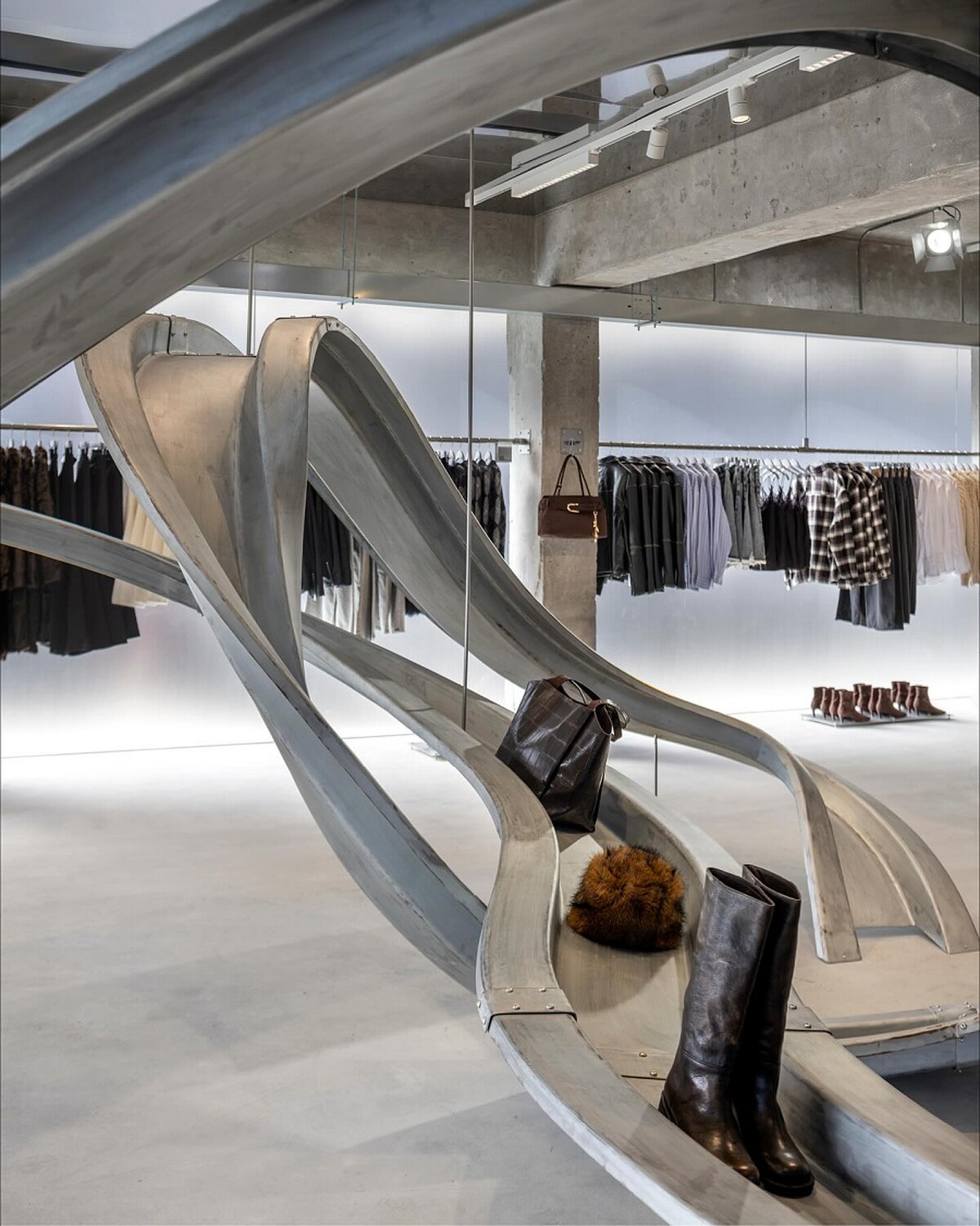 全新的概念空間中,一樓即可感受到流動的金屬與工業店裝帶來的科技感與實驗性,再向上的每一層樓都被設計成不同章節,相較於大家印象中H&M門店,減少了大量服裝陳列的快時尚感,多了一套又一套的質感與氛圍。