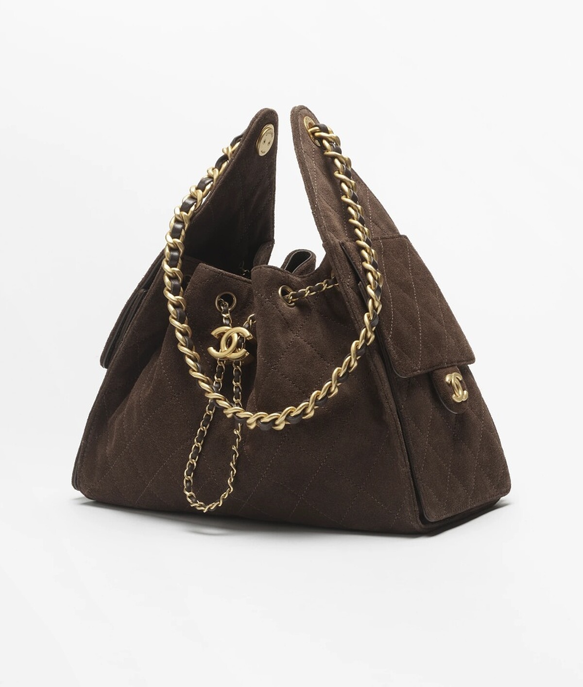 香奈兒以柔霧麂皮重塑品牌強勢IT Bag CHANEL 25,經典的菱格紋讓熟悉的包型多了一份柔和的氣息,這款以深咖啡色麂皮打造的手袋,輪廓鬆軟不失結構,金色雙C鏈條搭配絨面質感,展現品牌一貫的高雅韻味,搭配針織或羊毛外套都能自然流露不費力的優雅。
