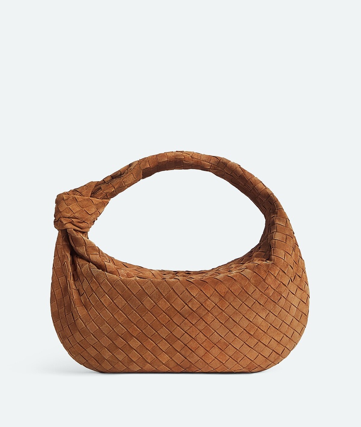 經典Intrecciato編織在麂皮材質演繹下更顯低調細膩,焦糖色的Jodie包圓的包身輪廓搭配上結繩提把,在霧面質感的麂皮映襯之下,是喜愛Clean Fit風格的時髦經秋冬不可或缺包款。