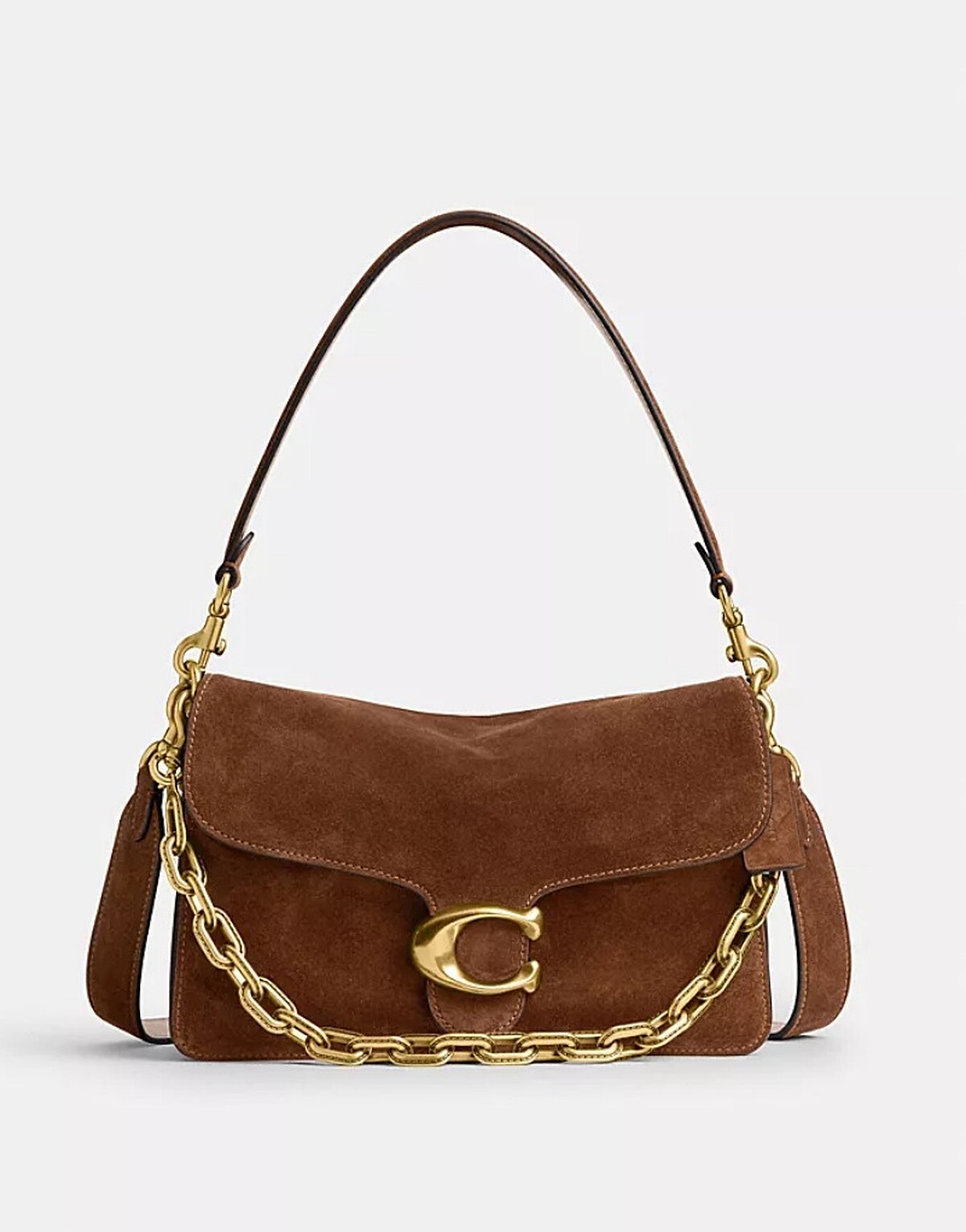 非常受Gen Z世代喜愛的Tabby包款,換上麂皮簡直品牌DNA中復古美式風情的最佳拍檔,焦糖色麂皮結合厚實金鍊與金屬C字扣,無論搭配牛仔或針織,都能散發自然的美式風格,是平價高質感的代表之一。