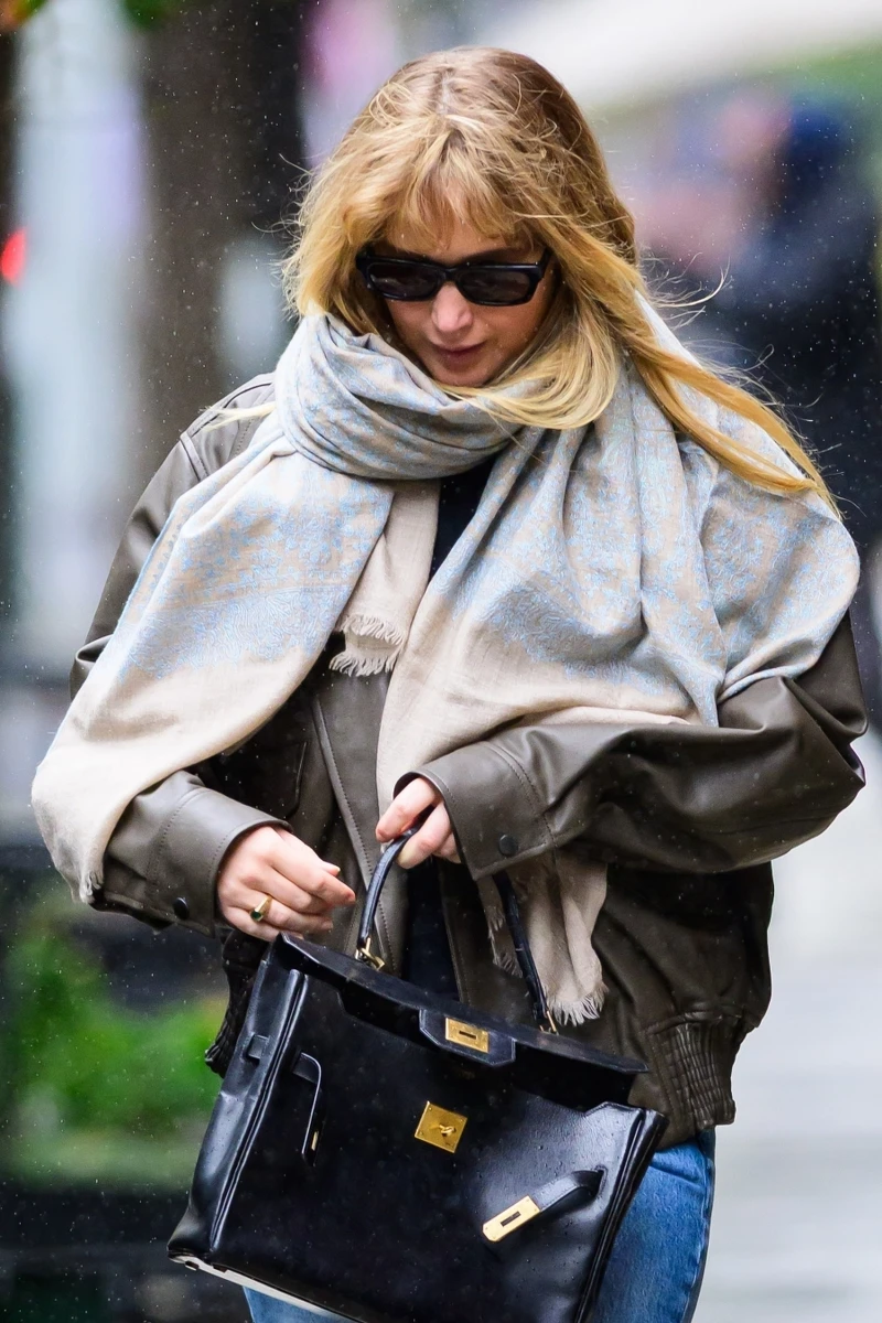 珍妮佛勞倫斯私下打扮一向低調,近幾次出門時被拍攝到,無論是米黃色的風衣造型、皮衣或皮革西裝外套,在這些不同風格的穿搭之下,他都搭配著同一款愛馬仕黑色凱莉包,仔細看看這款包似乎也與現在專賣店上的凱莉包略有不同,原來珍妮佛勞倫斯選擇的是復古款的「Kelly Monaco」。