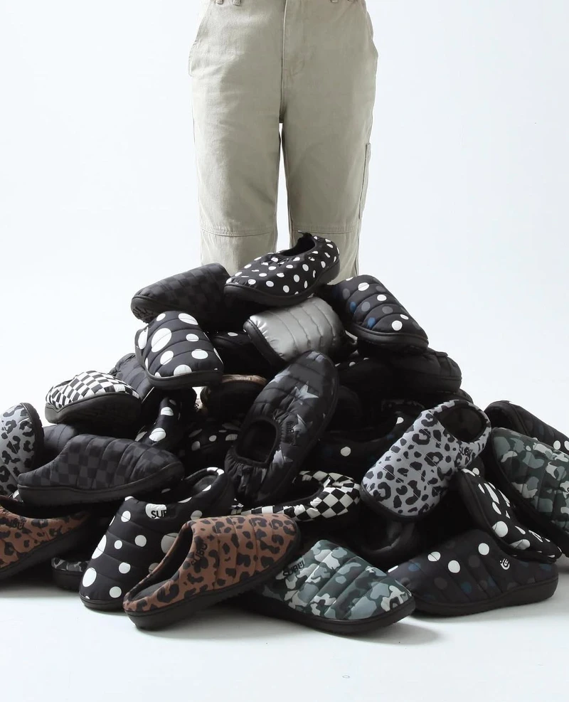 來自日本的品牌Subu以製作冬季拖鞋、保暖拖鞋聞名,Subu的拖鞋有著標誌性的澎潤外型,像羽絨衣一樣透過縫線與填充打造出輕盈而保暖的效果,主打在濕冷的冬天裡,也能夠赤腳穿上Subu拖鞋,並感受到滿滿的溫暖,更持續推出多樣化的外型設計,令一般常被視為室內拖的鞋型,逐漸演化成日常外出的時髦單品。