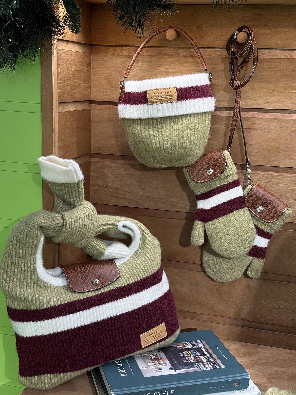 經典Le Pliage幻化出了超軟萌的針織款式,直接將毛衣的手袖變成肩背包的背帶,可以自由拆解、打結,製造出不同長度與隨性態度;同色系的手套、毛帽也加入了皮革袋蓋、皮革手提把,變成特殊造型的手袋,全套一起搭配更具溫暖氣息,實在是太可愛了!
