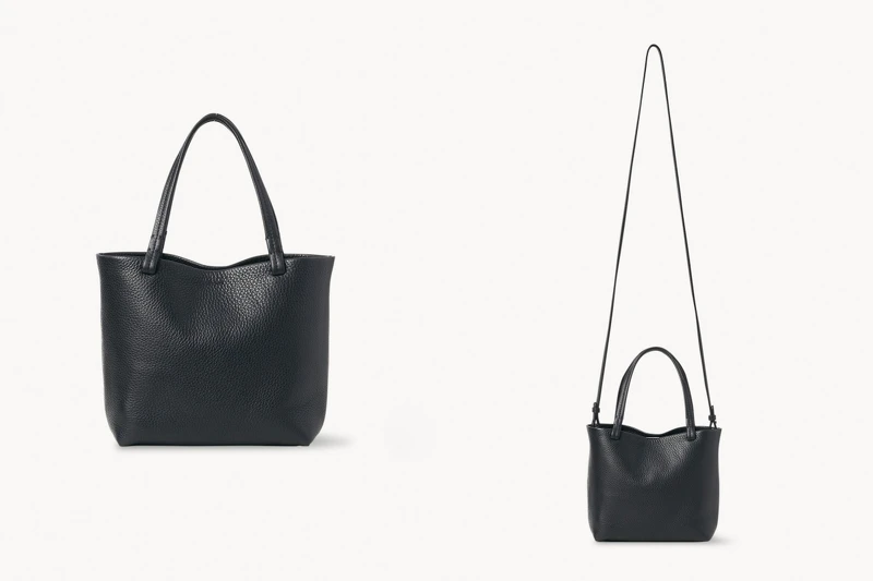 The Row曝光度最高的一款手袋——Margaux,也是靜奢風的代表包款,包身以柔軟小牛皮或麂皮打造,搭配微微弧形的結構線條與包身兩側的束帶設計,兼具優雅與實用性, Jennifer Lawrence、Kendall jenner以及Rosie Huntington都是的愛用者之一,無論是素色大衣或是休閒俏皮的毛衣造型都能搭配,Margaux有10、12、15 和17 英寸多種選擇,從通勤到旅行都能輕鬆駕馭,是入手The Row的首選投資款。