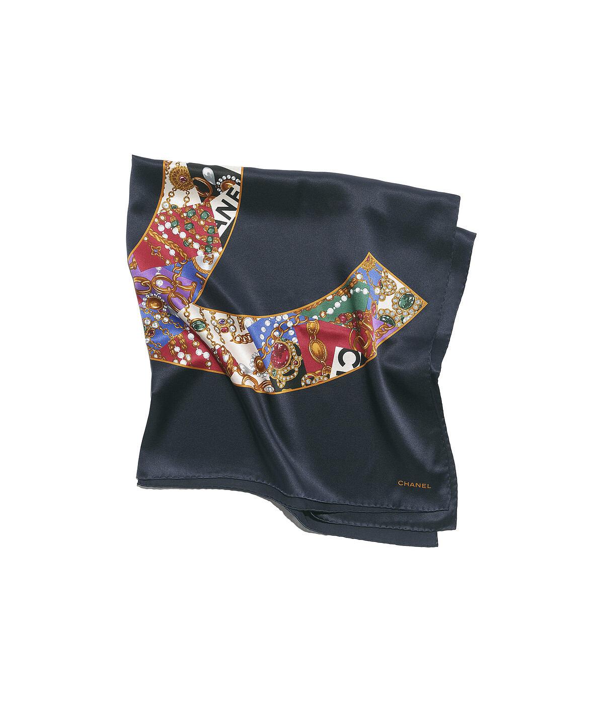 Chanel多彩飾以雙C LOGO與珠寶圖樣方巾,