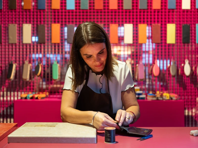 關於愛馬仕的皮件製造,更蘊含極其豐富的內容,在皮革製作區域,可以看見工匠巧手揮舞針線,施展獨特的針縫法,現場一窺凱莉包的製作過程!轉身與物件修復工匠師親身交流,還能聽到許多有趣的故事。