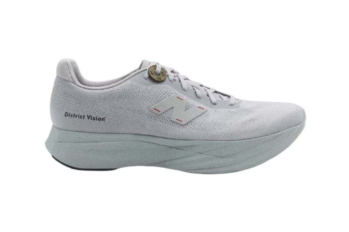 District Vision × New Balance FuelCell SC Elite v5 此次更輕、更快的高性能設計作為鞋款亮點,雙方以 FuelCell SC Elite v5 推出更洗練的高性能聯名,為長距離與競速調校,全掌碳纖維板提供穩定推進力。工程針織鞋面以 Bone 與 Pearl Gray 呈現清冷氣質。