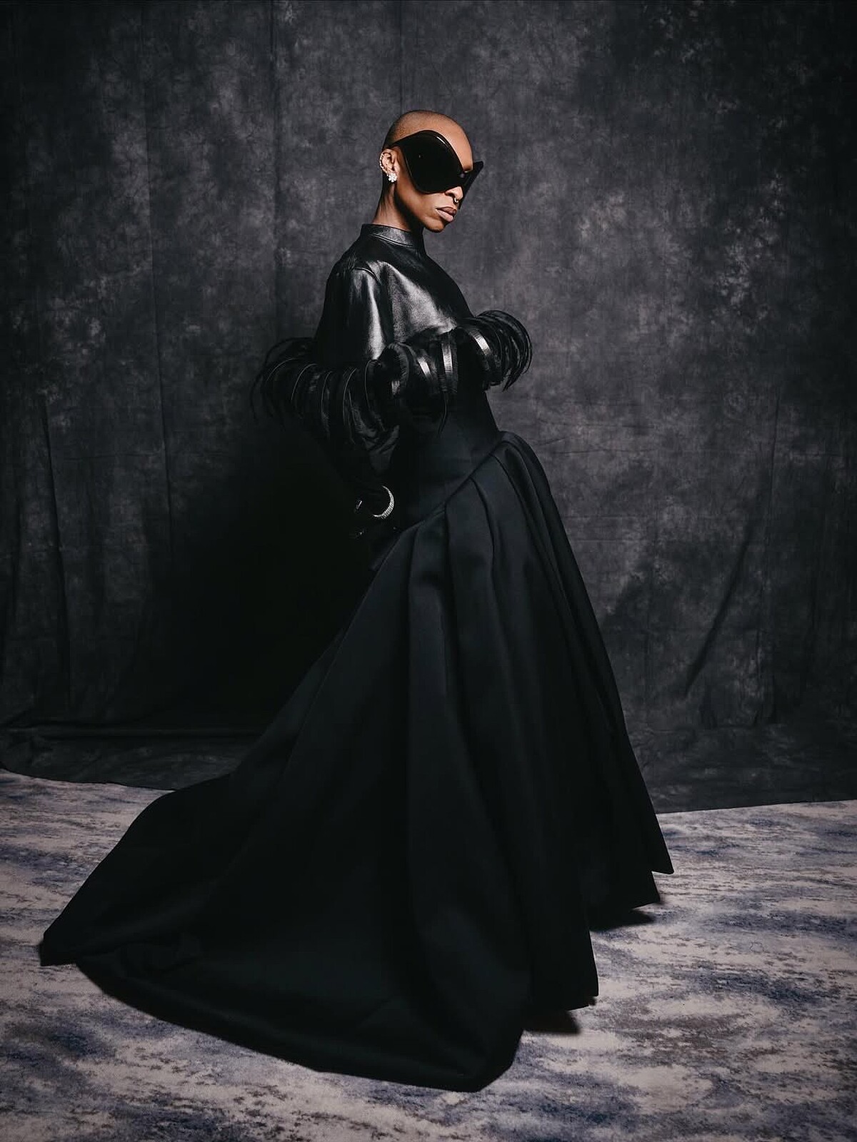 在首映會最後的紐約站,Cynthia Erivo祭出了最具個性的造型,同樣為Balenciaga新創意總監Pierpaolo Piccioli的焦點新作,皮革和羽毛的組合運用,搭配上超巨大的墨鏡,誰能比她還酷?