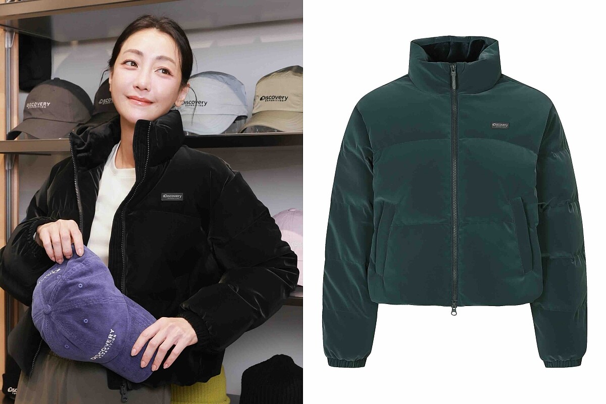 謝欣穎穿著的這件羽絨短版外套,是Discovery Expedition秋冬系列的新款式,霧絨面質感的外層不僅具有防潑水、防風與蓄熱的機能特性,布料隨著穿著走動間的光澤感也非常特別。