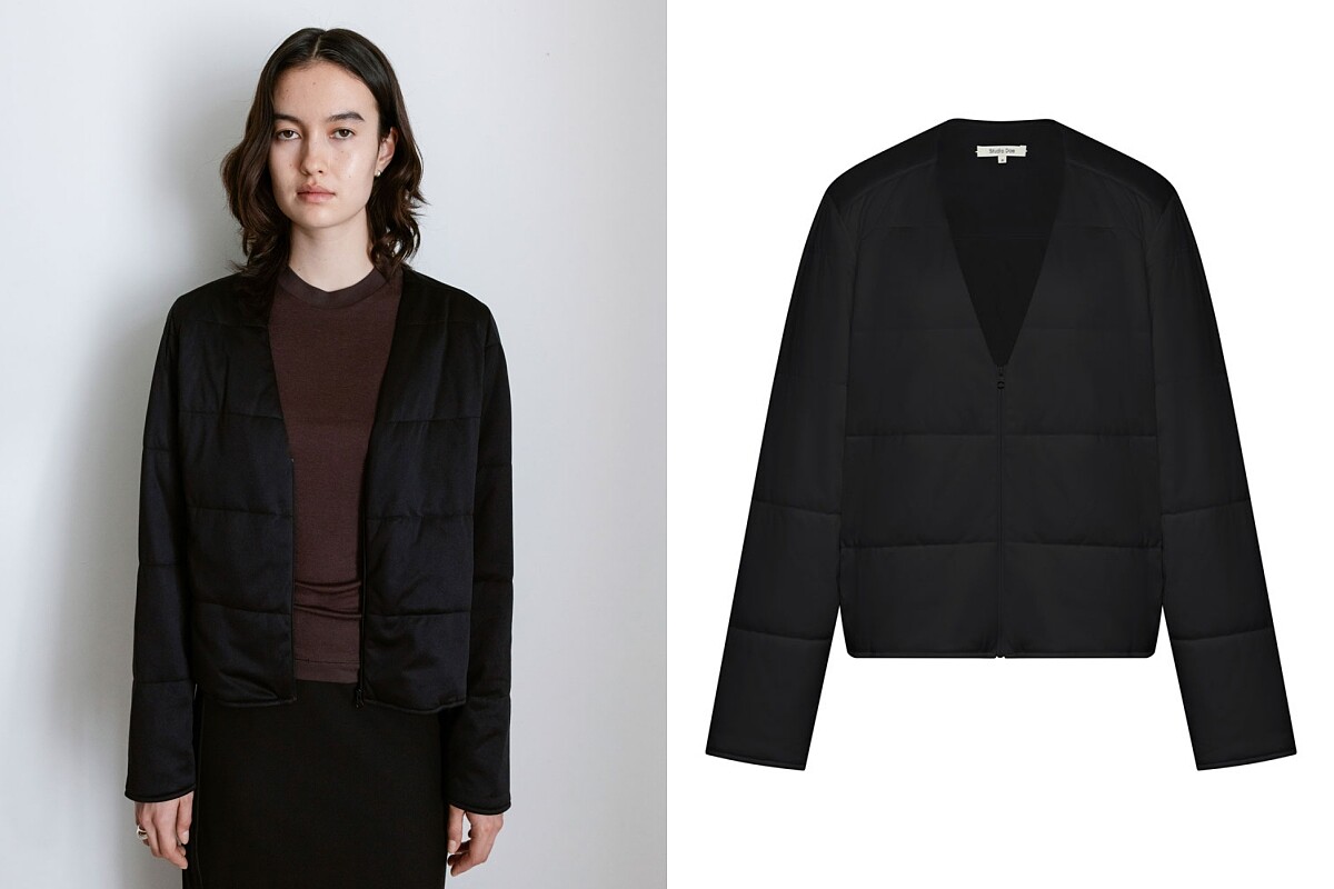 Studio Doe 的輕量夾層羽絨棉外套結合了羽絨與棉質的雙重保暖層次,既保持輕盈亦具備優異保溫效果,短版剪裁搭配微寬肩設計,塑造乾淨俐落的版型,無論日常通勤或週末出遊都能輕鬆穿出時尚與機能兼備的風格。