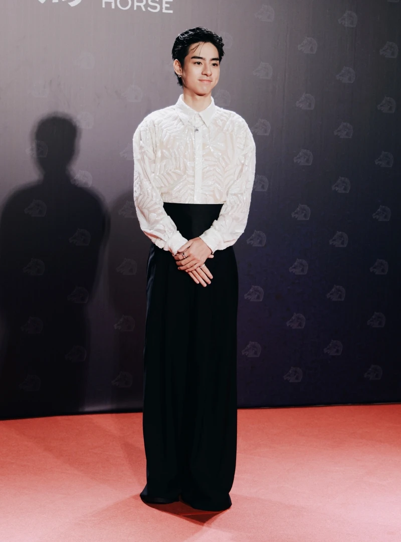 以電影《失明》角逐第62屆金馬獎最佳新演員獎的劉敬,身穿一套白色透膚葉紋裝飾的襯衫,搭配高腰黑色西裝寬褲的造型現身紅毯,整體風格俐落分明有藏著設計細節,展現出與過去不同的成熟風格,也擄獲全場目光。