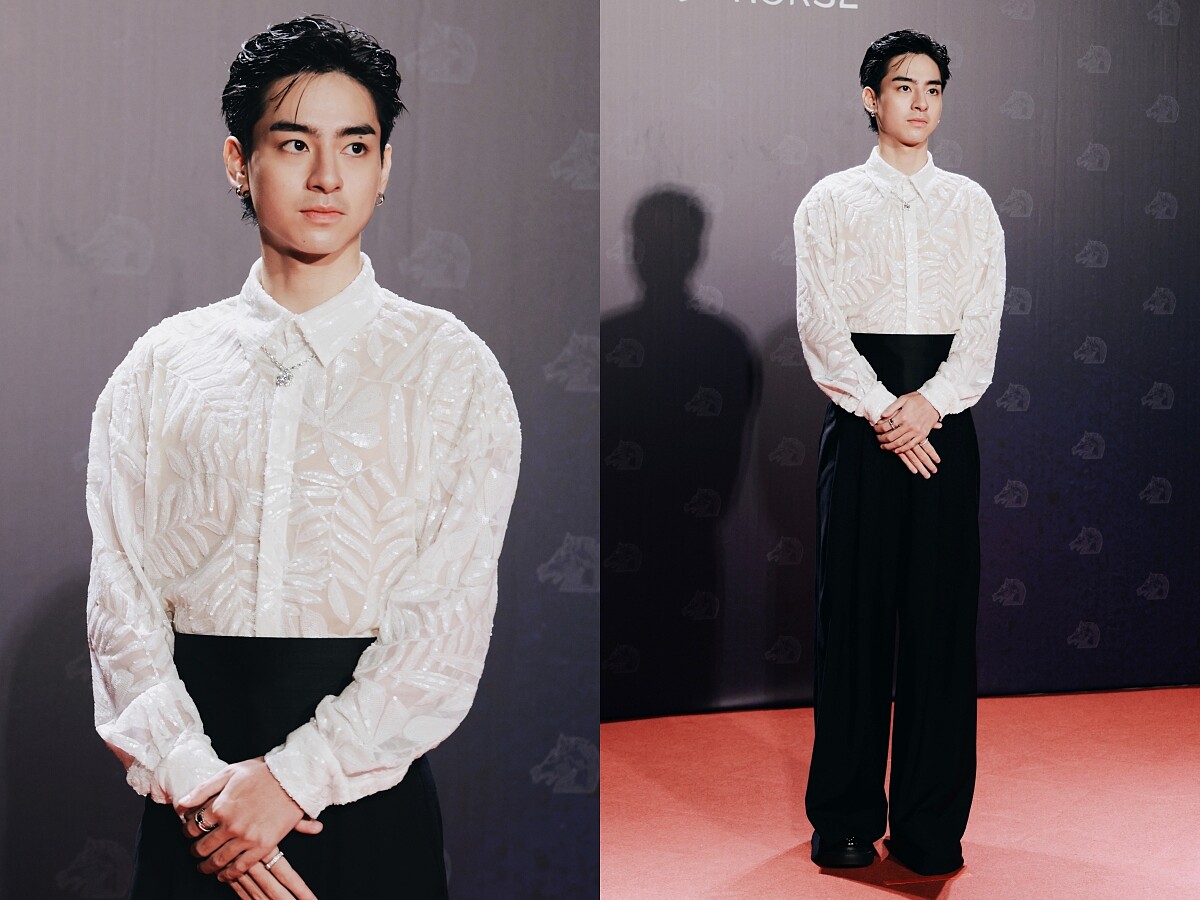 新世代演員劉敬有著新世代的穿搭風格,今天他選擇穿上一套白色透膚葉紋裝飾的襯衫,搭配高腰黑色西裝寬褲的造型現身紅毯,有著不同以往的成熟中的少年感,是今晚紅毯上討論度頗高的男星造型之一。