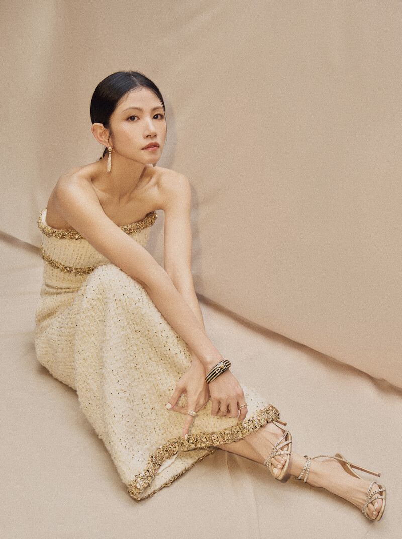 以〈我天生-有病版〉入圍最佳原創電影歌曲的樂團告五人成員雲安、犬青、哲謙三人相互搭配的黑白系服飾與Chaumet珠寶踏上星光紅毯。其中,犬青配戴了一條Joséphine Aigrette 全新項鍊,搭配同系列耳環、手環及戒指,作品俐落優雅的V字樣式巧妙呼應禮服的腰際線條。