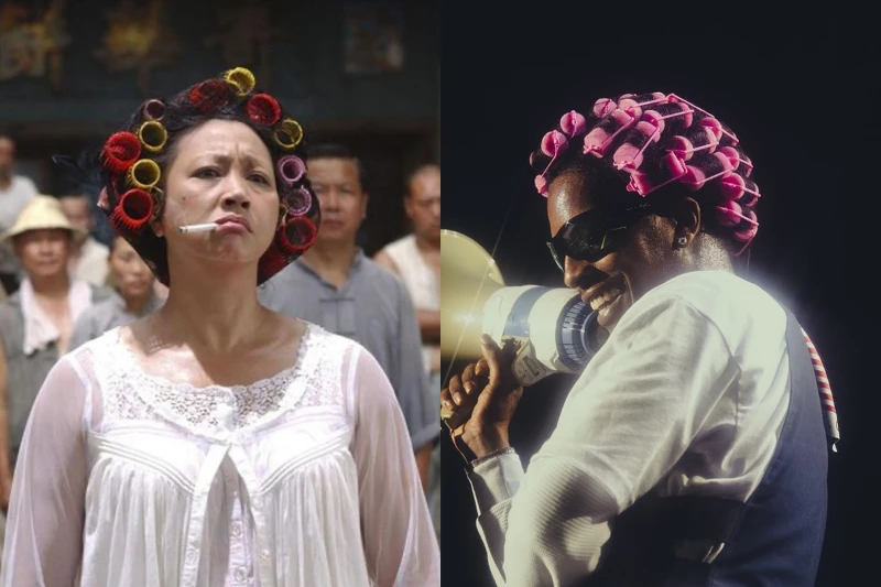 A$AP Rocky曾說過AWGE的創意核心就是「自由、不解釋、不需要講道理」,-而這次的髮捲毛帽也是這種精神的延伸,把本來被視為日常甚至有點滑稽的物件挪用進街頭風格穿搭中,從黑人髮廊文化,到周星馳《功夫》中包租婆滿頭髮捲的記憶,這頂帽子還帶有跨文化的趣味,也讓時尚多了幾分叛逆與笑點。