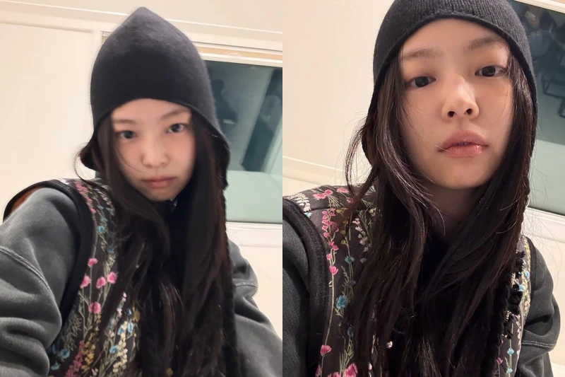 Jennie的姨母背心以細緻碎花刺繡為主體,搭配深色衛衣與慵懶的蓋耳毛帽,完美把「姨母單品」穿成酷女孩的頹廢街頭Look,她的搭配關鍵是利用暗色壓制花布的老派氣息,讓背心變得冷調又有態度。