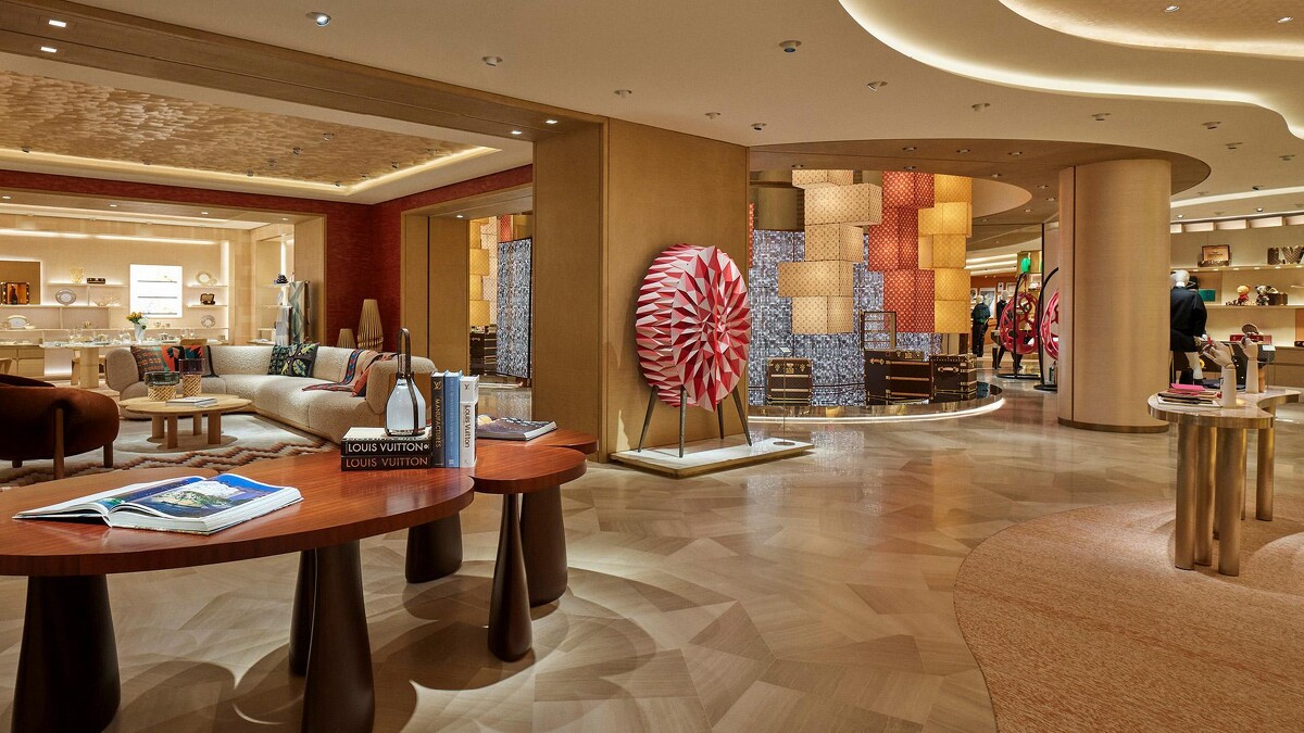 空間配置俐落明確:一樓為女款皮具、配飾、美妝與珠寶;二樓陳列女裝與鞋履;三樓為男士皮件、服飾及旅行用品;四樓禮品店展示專為首爾設計的 Vivienne、鉛筆袋與 Objets Nomades 家飾。這裡不僅是購物空間,更是品牌生活風格的延伸,展現路易威登從旅行精神延伸至家居美學的視野。