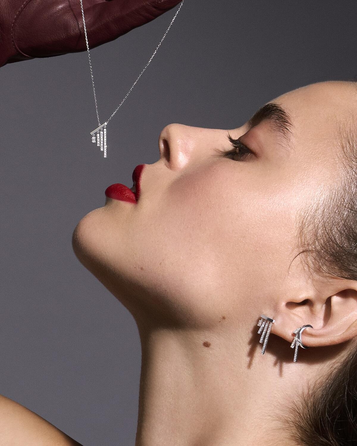 節慶夜晚的派對節奏緩緩升溫,當時針指向10:00,燈光搖曳中的迷人光影如瀑布般灑落在頸間這一刻,Baguette Cut長方形切割鑽石為主角的Chandelier Baguette系列鉑金鑲鑽項鍊,便自然成為眾人視線的焦點,以俐落的排列結構與層次堆疊的光感,折射出如同古典吊燈般璀璨而優雅的氣場,金屬與鑽石交織出流轉不息的光芒,恍若午夜前最耀眼的一次眨眼,既華麗,又令人難忘。