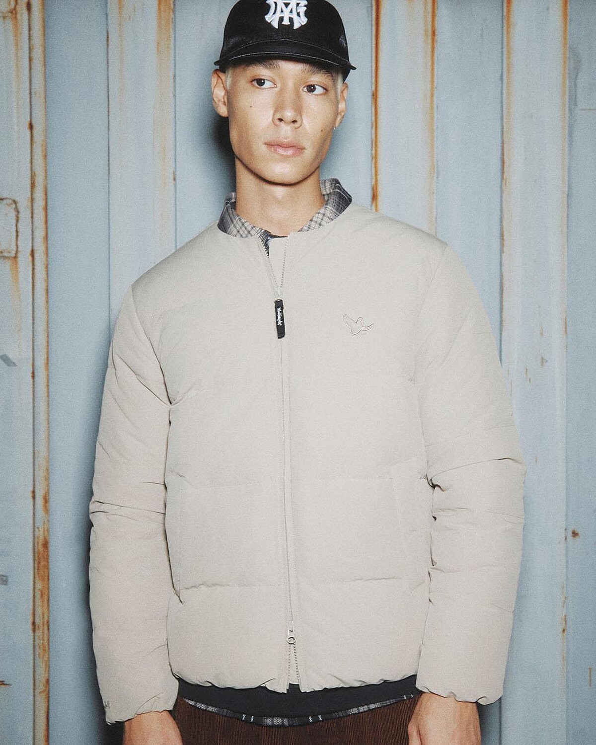 Mark Gonzales羽絨外套用料不馬虎,採用80%鴨絨與20%羽毛的黃金比例,既輕盈又保暖,圓領設計讓外套線條俐落,不論單穿或疊穿都易於搭配。韓國設計團隊更將功能性與時尚感完美結合,無論上班、上課或外出,一件羽絨外套即可完成冬季造型。胸前手寫Logo低調中帶街頭個性,微光澤面料增加穿搭細節感,搭配耐用YKK拉鍊及可調節下擺抽繩,靈活呈現休閒或俐落風格~