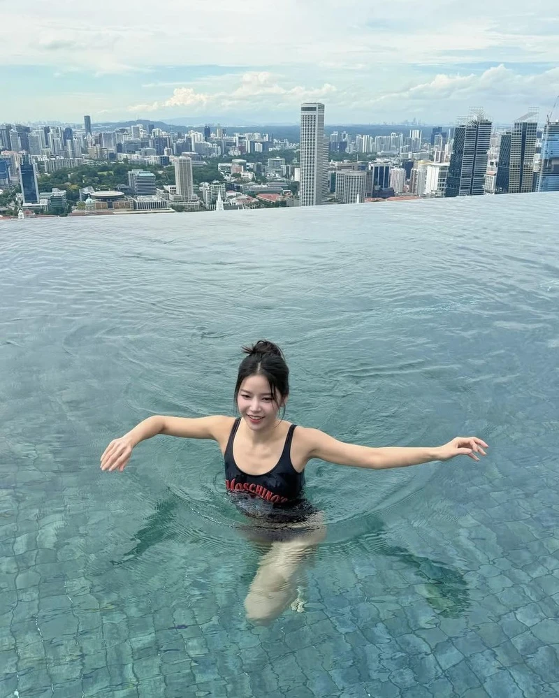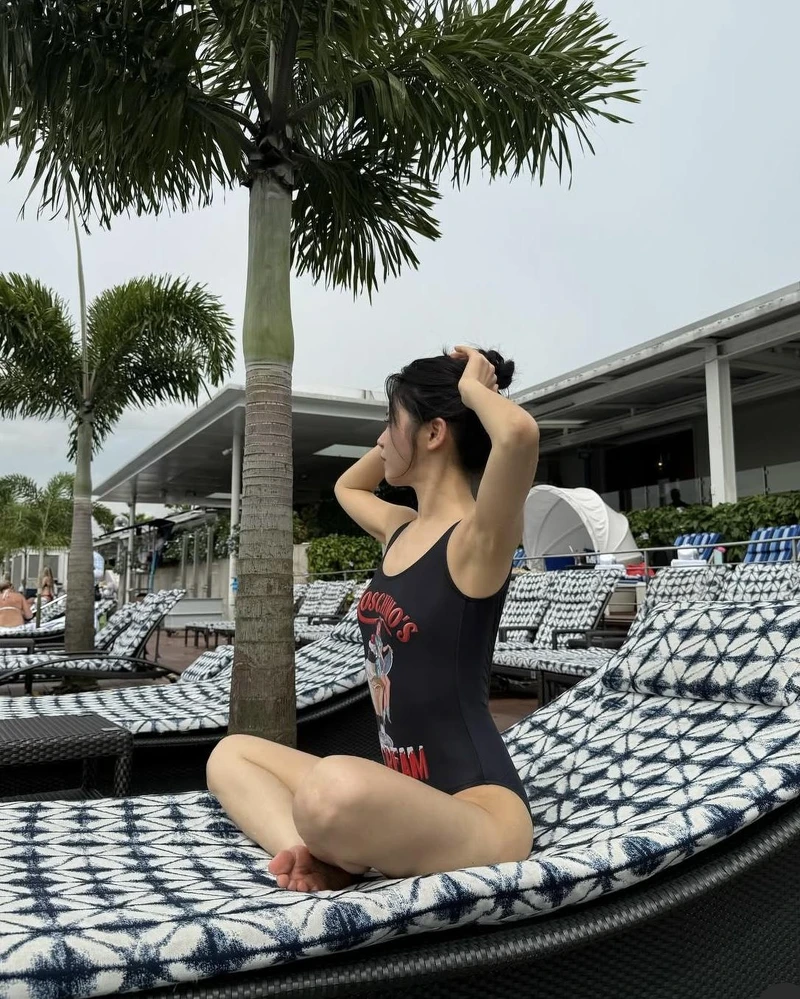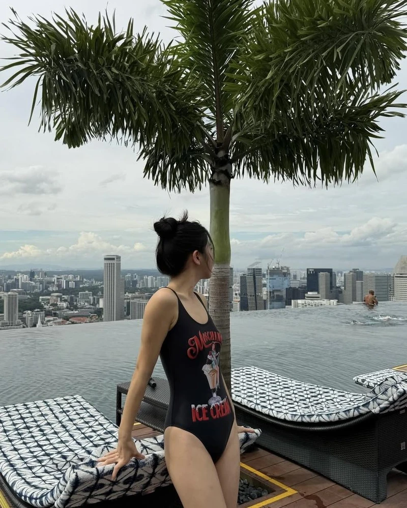 行程滿檔的他,近期在新加坡難得偷得浮生半日閒,換上泳裝在飯店泳池享受短暫假期。然而,比陽光還吸睛的,是他身上的那套Moschino黑色復古印花連身泳裝。這件連身泳裝以品牌經典的復古女郎搭配冰淇淋插畫呈現鮮明視覺,完美延續Moschino一貫的幽默、美式復古與戲劇化DNA,讓頌樂的度假照瞬間成為焦點話題。
