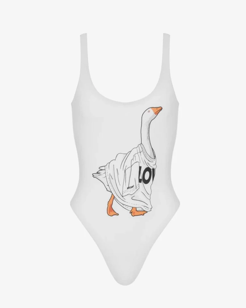 超級可愛的 Moschino 資料庫復刻鵝插畫。帶點荒謬又藝術的幽默,是喜歡 Moschino 俏皮感的人最愛的冷門寶藏款。